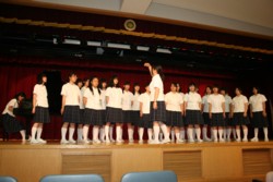卒業生・在校生・教職員による各種アトラクションが催され、最後には全員で学院歌を斉唱し、記念撮影を行いました。