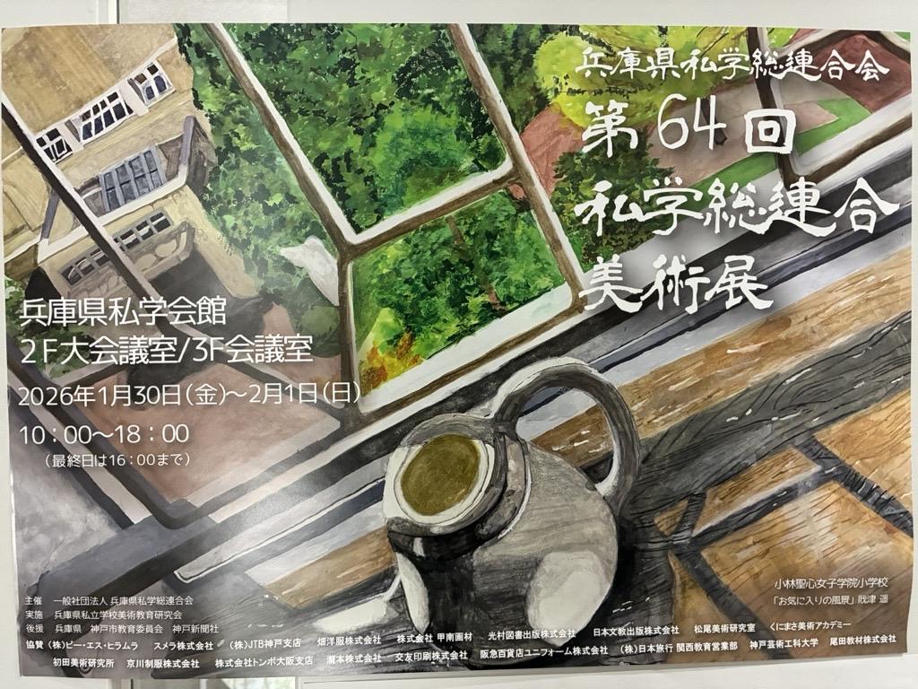 1月30日(金)~2月1日(日)の日程(10:00~18:00 ※2日のみ16:00まで)で開催されている兵庫県私学総連合会主催の「第64回 私学総連合美術展」に本校からも出品しました。