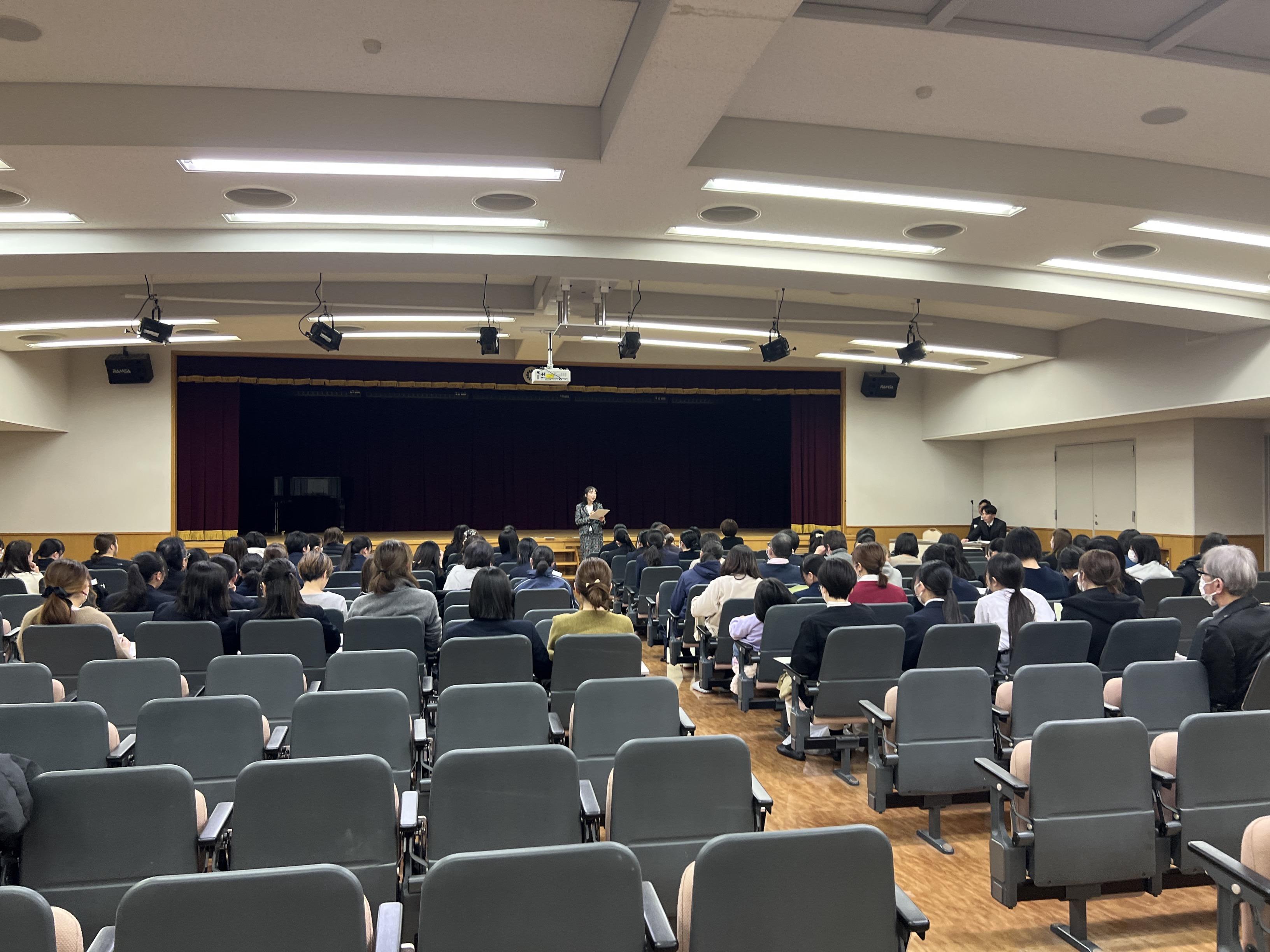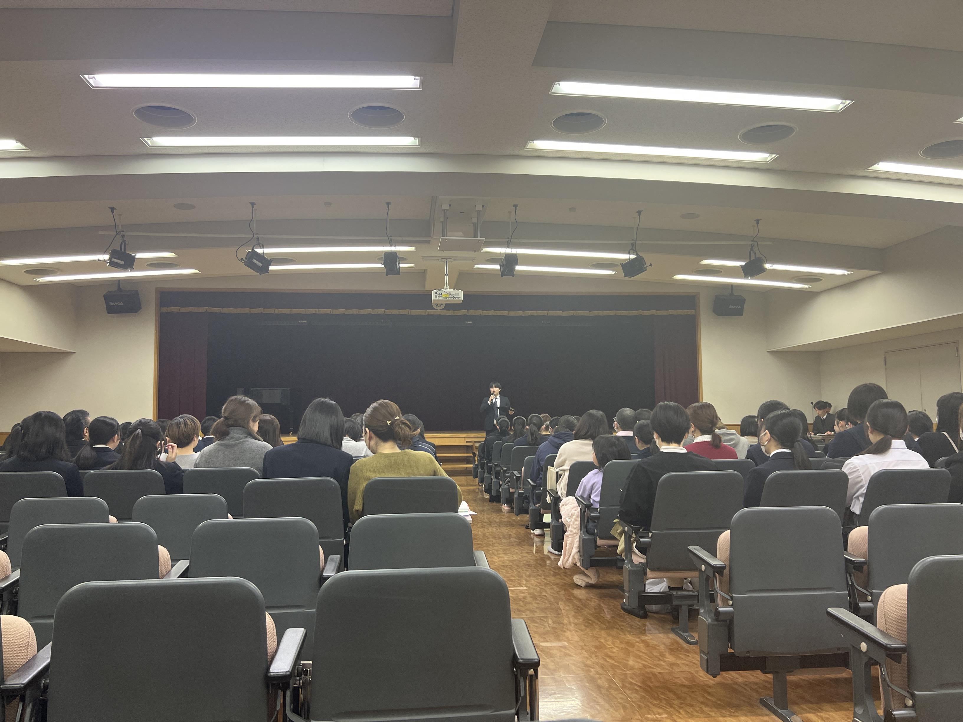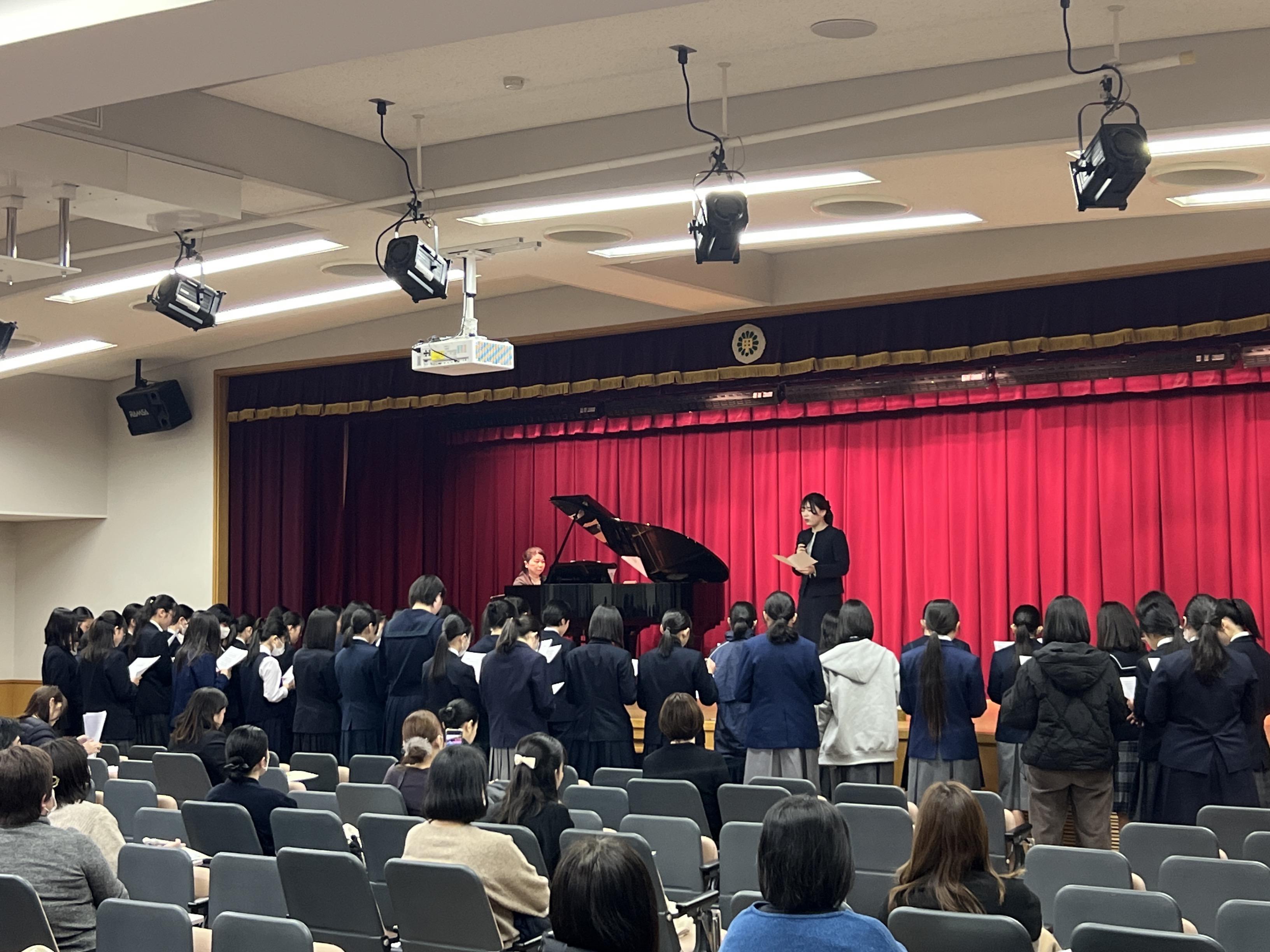 続いて、入学式で歌うことになる学院歌の練習が行われました。入学予定の皆さんも元気よく歌唱ができていました。