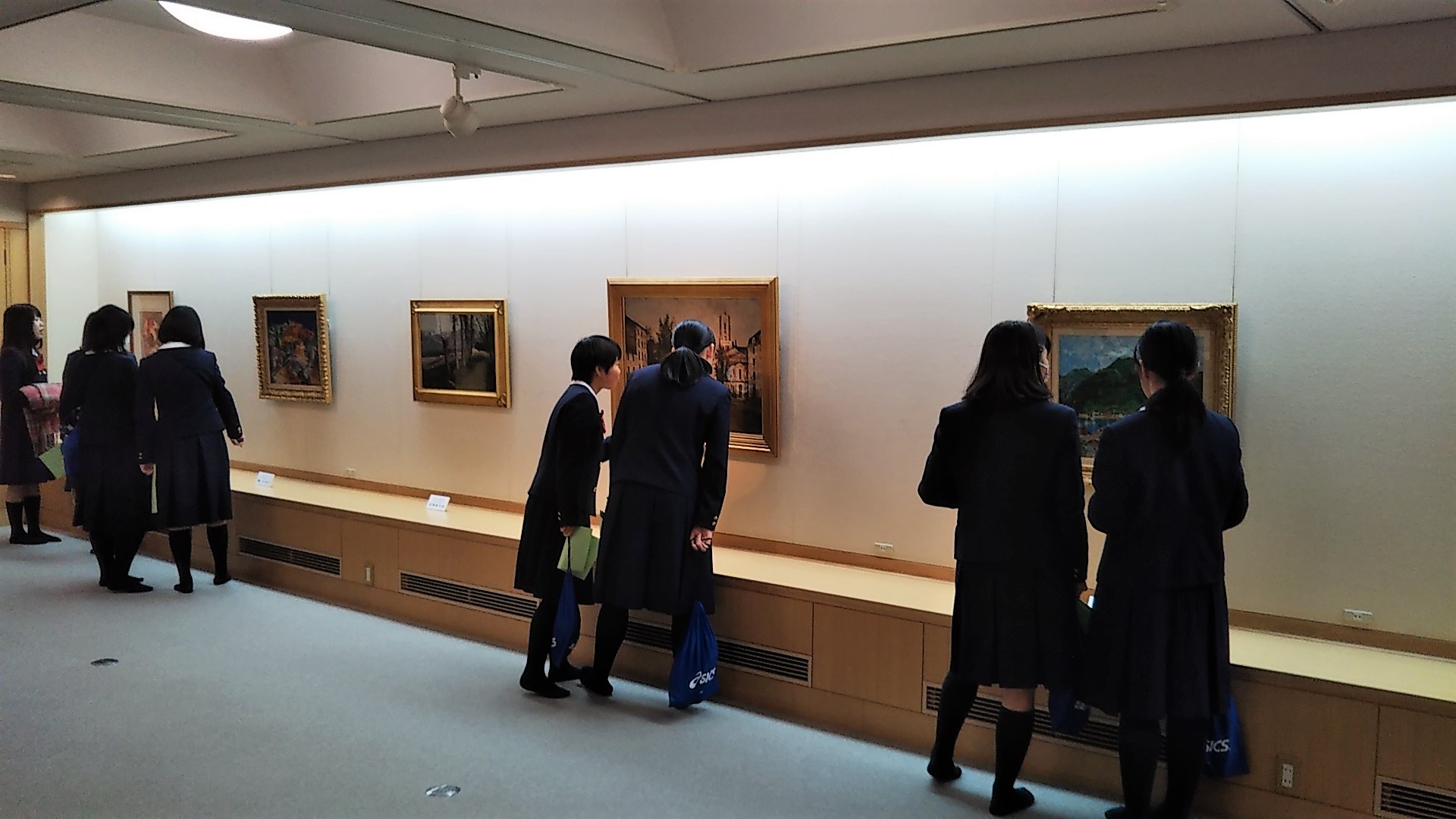 生徒たちはそれぞれ気になる作品を見つけては、足を止めて一つ一つの作品に見入っていました。