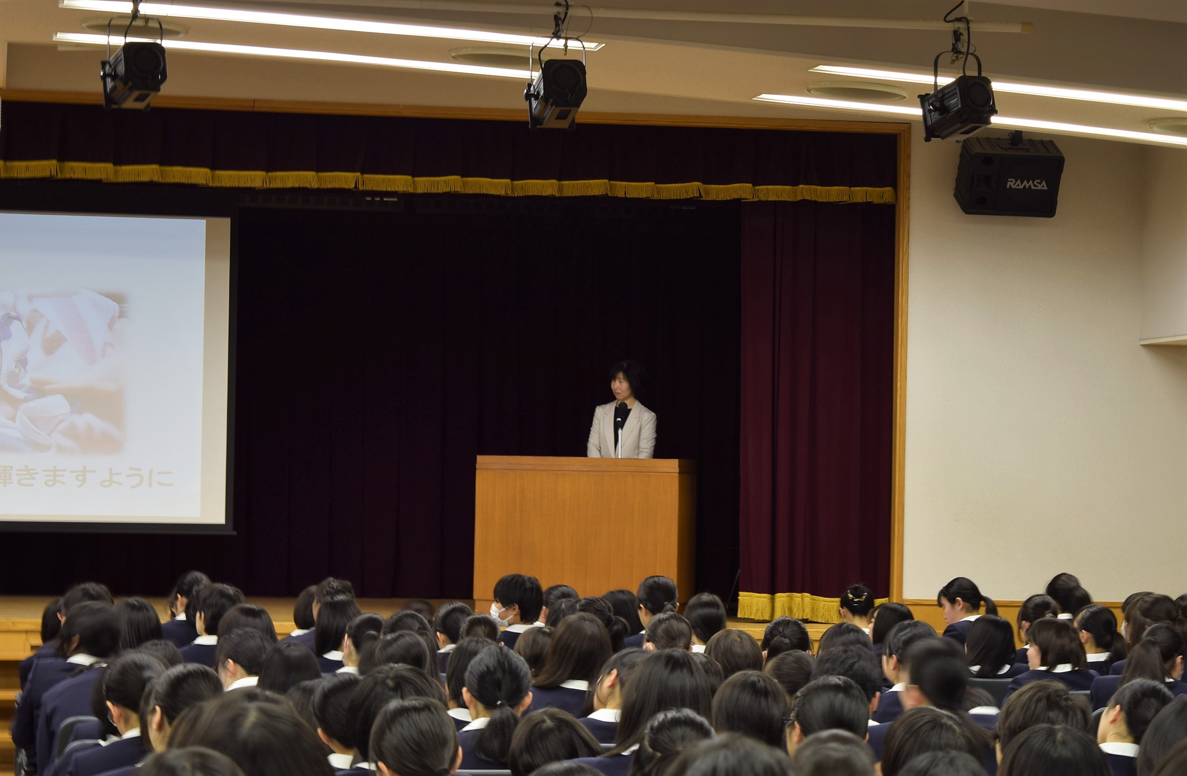 2月16日(土)、全校生徒対象に、助産師さんが伝えるメッセージ「あなたの命が輝くために」という演題で、