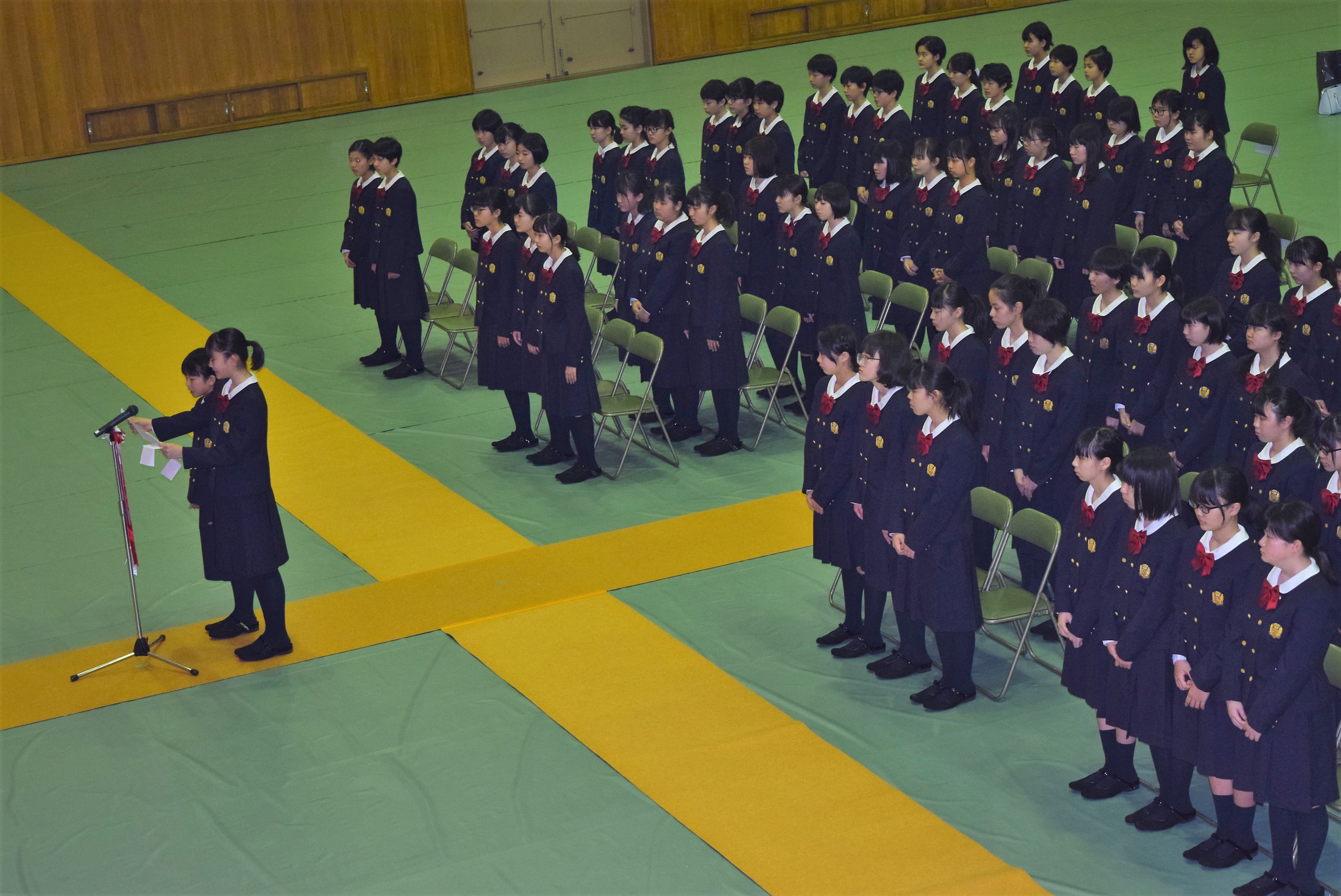式場には新入生と保護者の方々に加えて、在校生も参列して入学を祝いました。