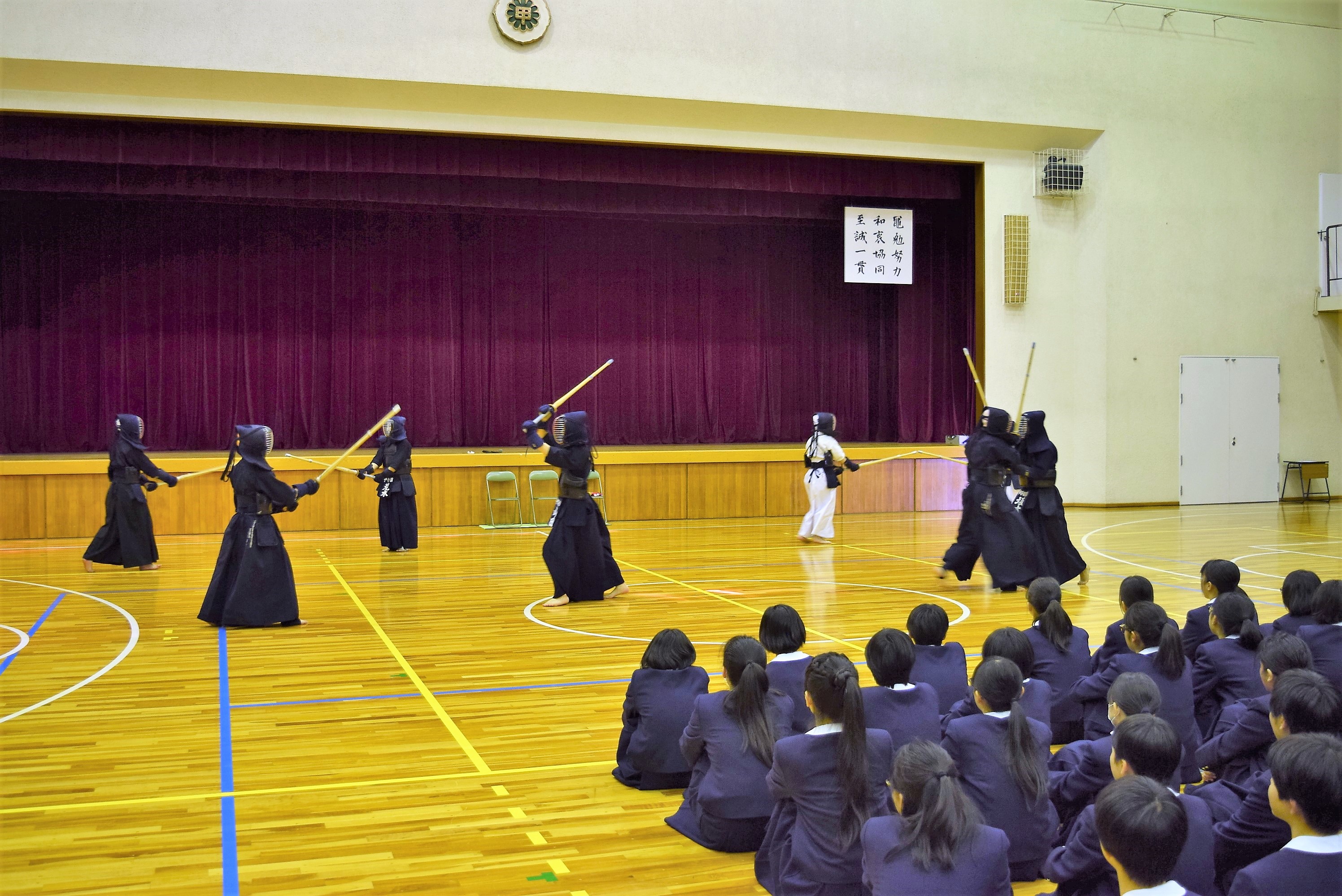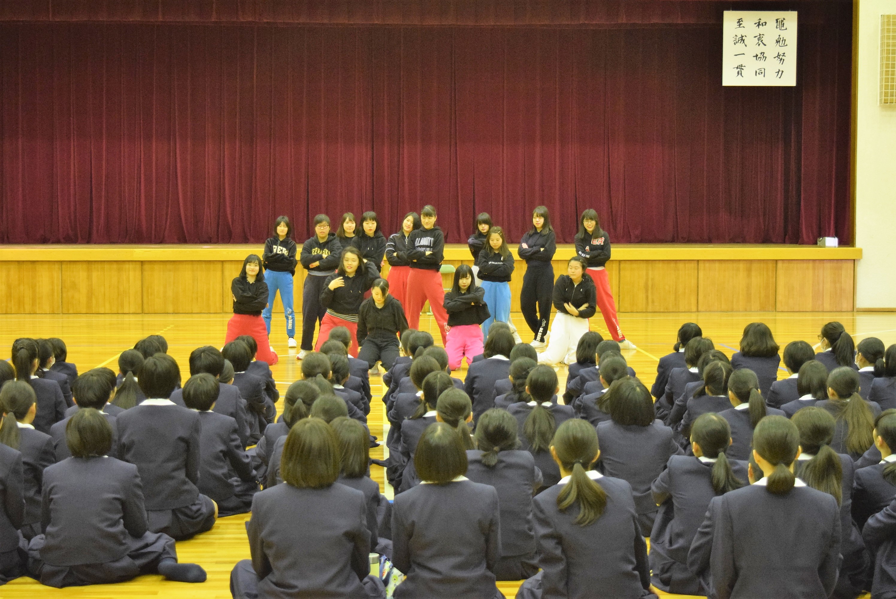 新入生たちは、真剣な面持ちで各クラブの演技、紹介を見学していました。
