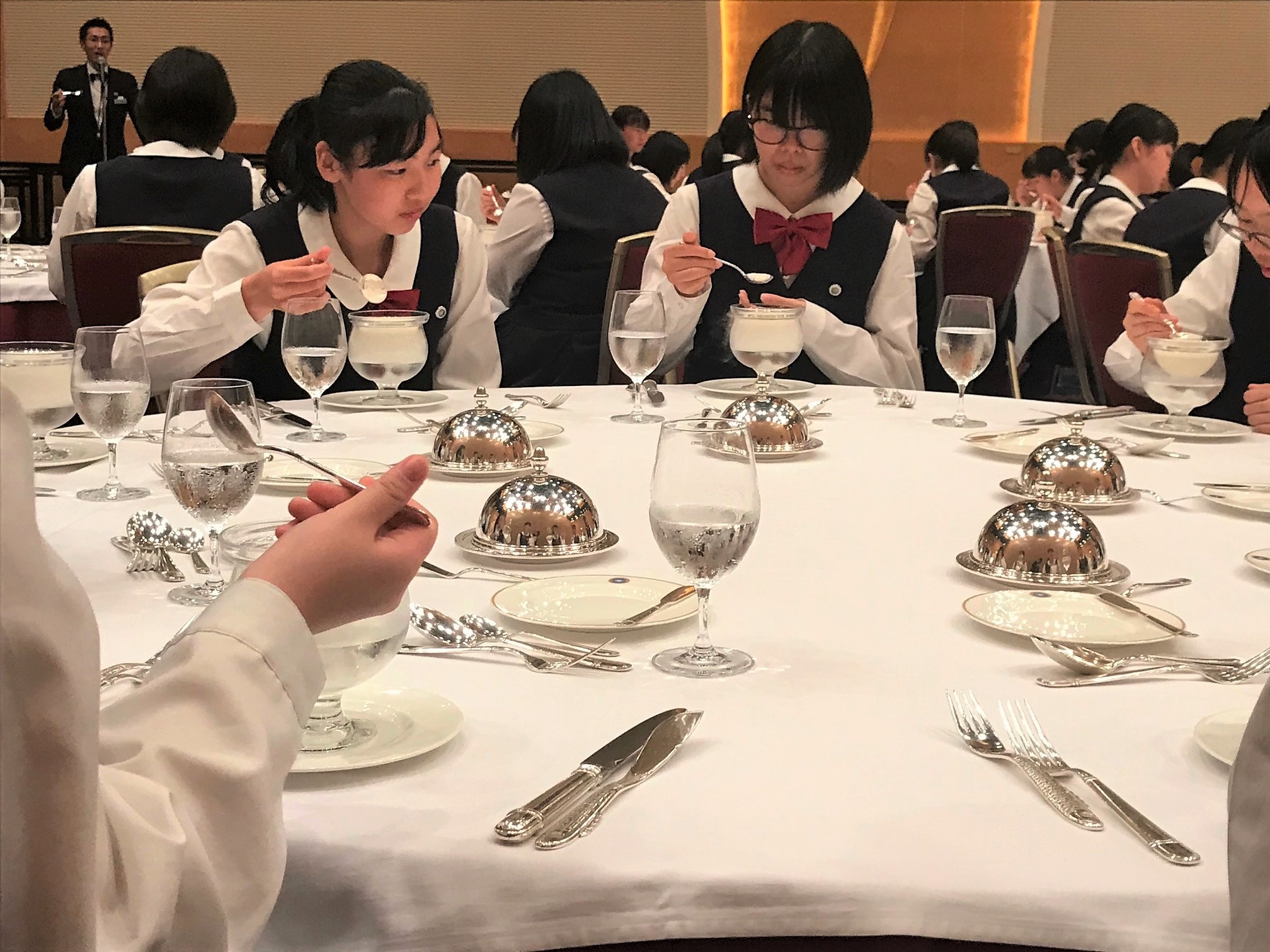 また、キャリア教育として夕食時にテーブルマナーについて学びました。