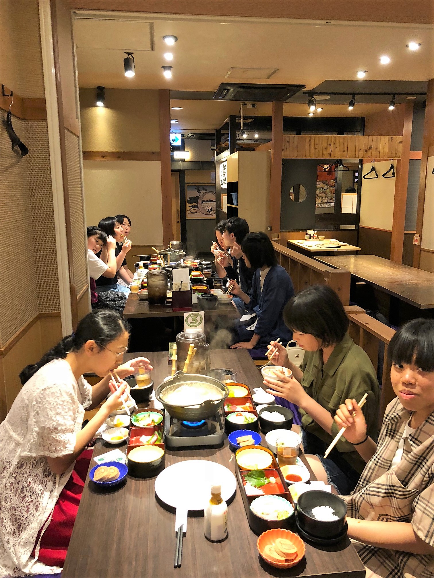 両国では、みんなでちゃんこ鍋を食べながら、今日1日の振り返りをしたり、明日からの過ごし方を相談しました。