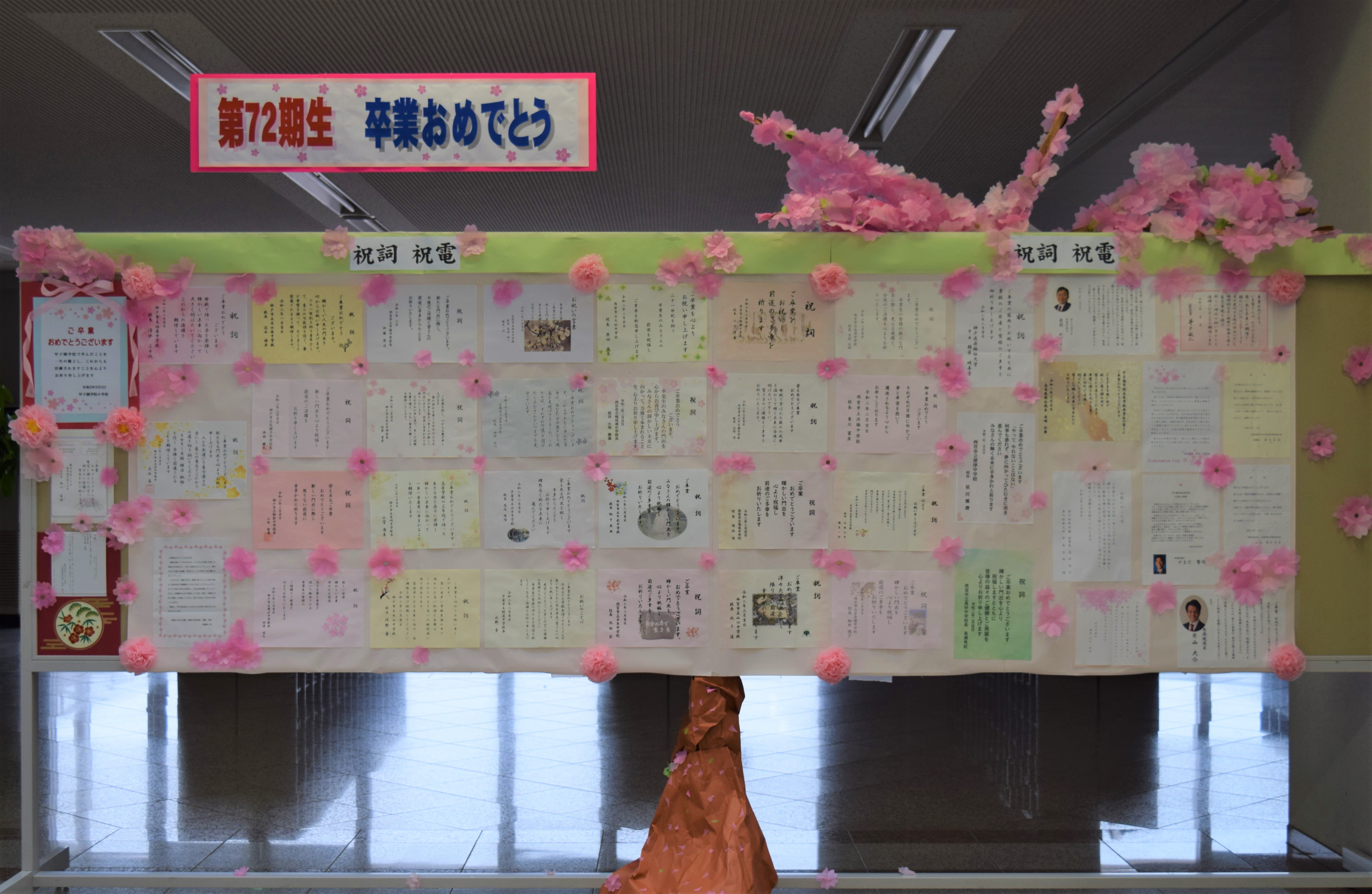 出身中学校から卒業するみなさんへのお祝いメッセージもたくさん届いています。