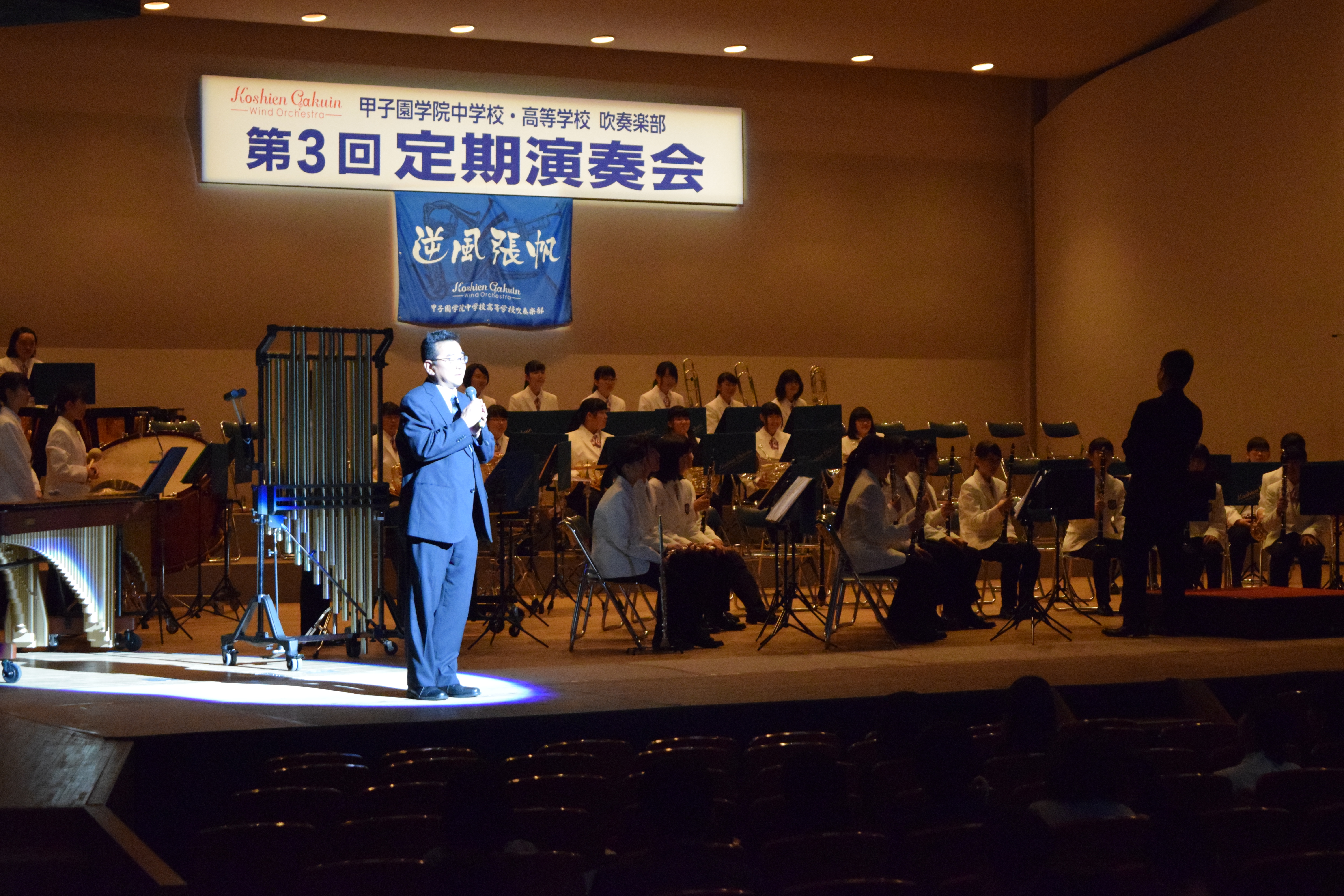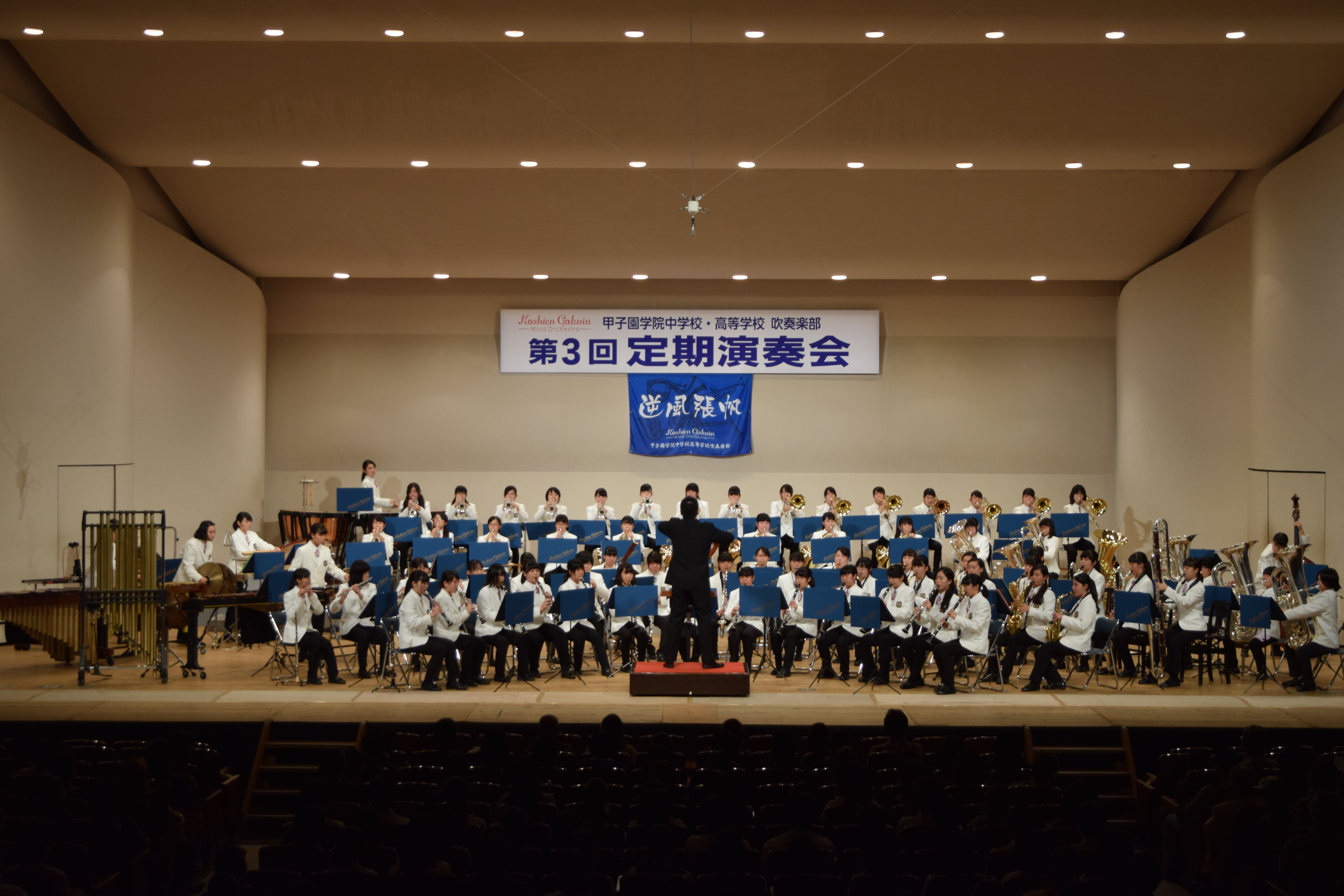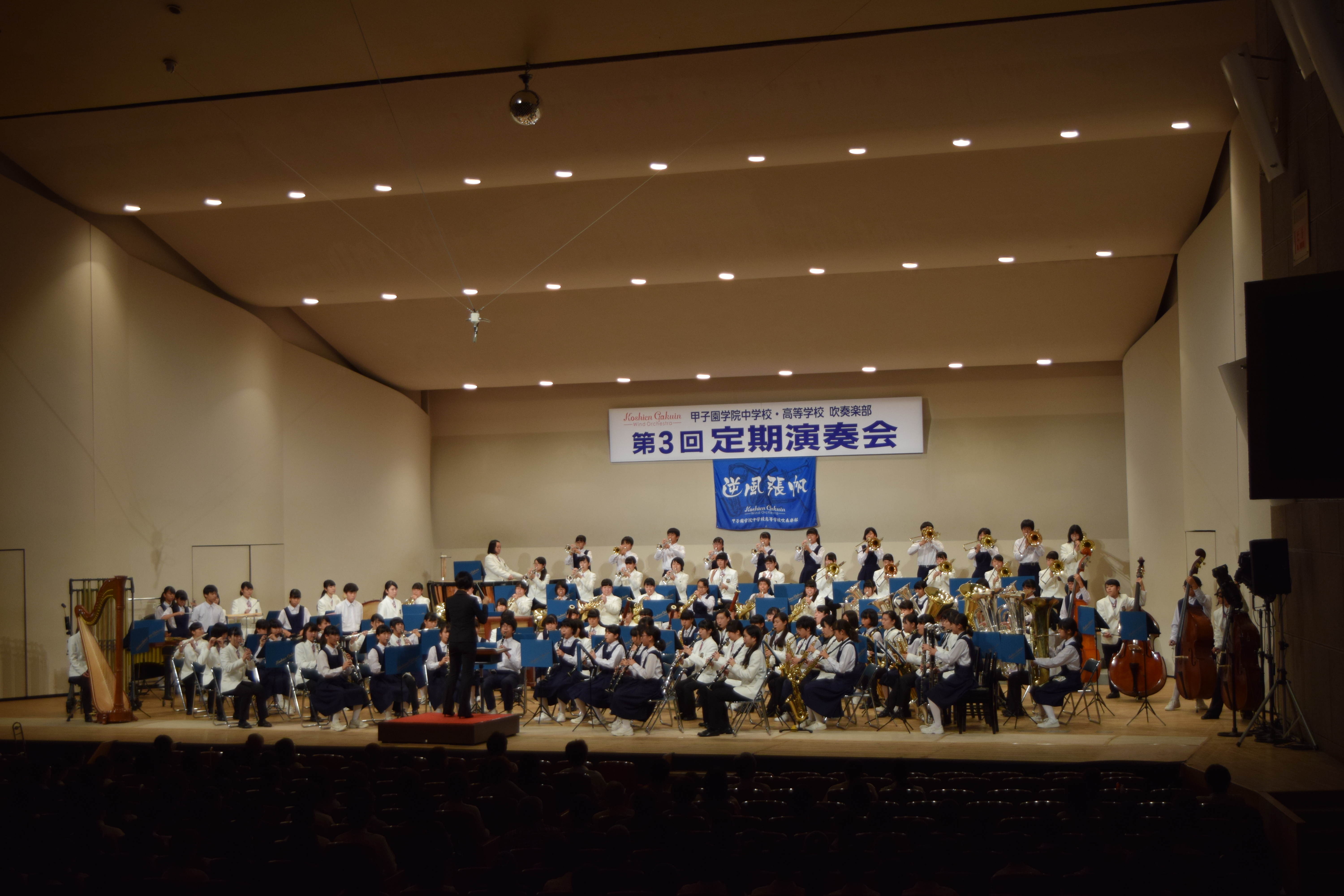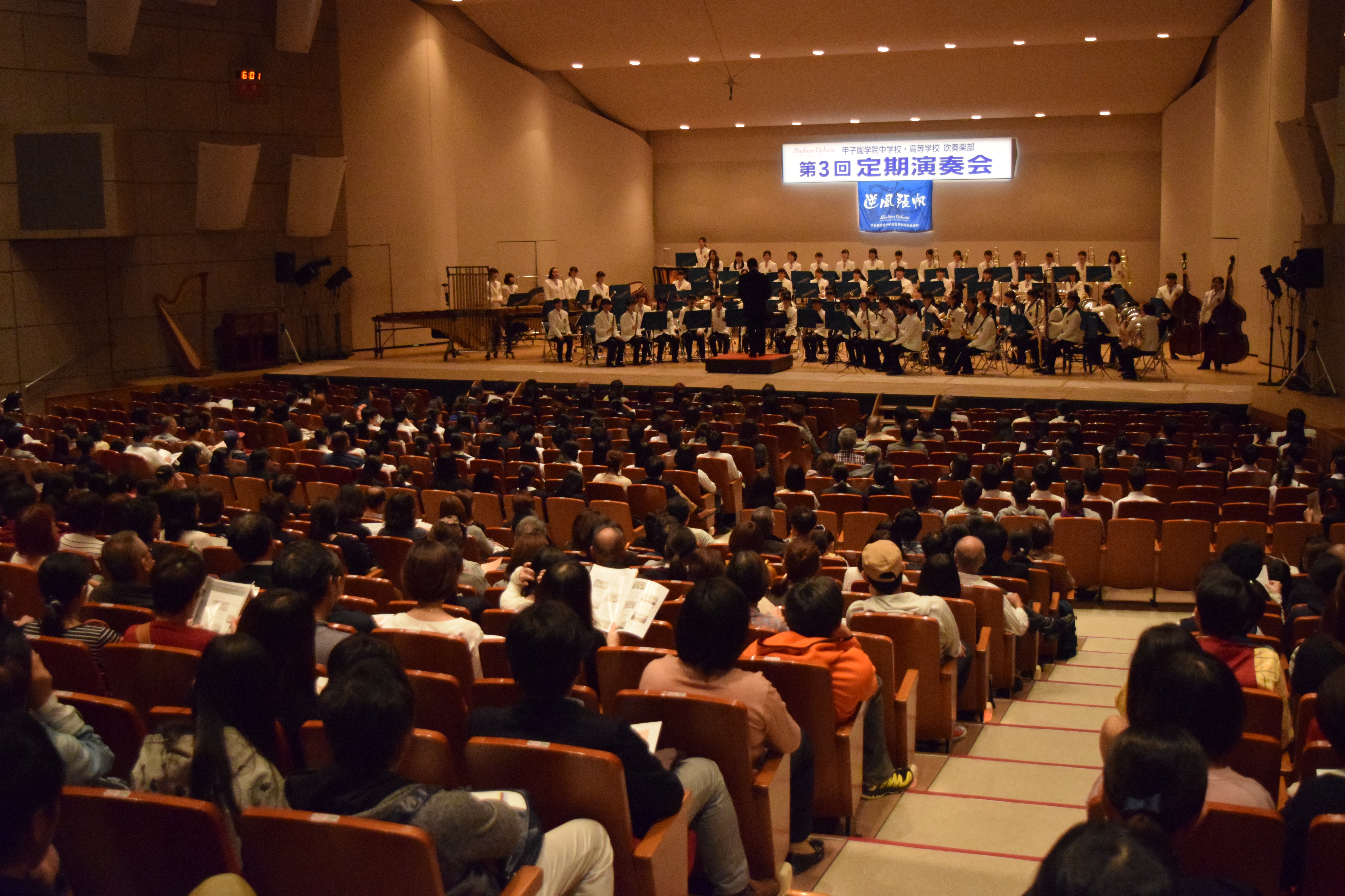 平成29年10月13日(金)、吹奏楽部による定期演奏会を西宮市民会館アミティホールにて行いました。今回の演奏会では、西宮市立甲武中学校吹奏楽部の皆さんに賛助出演していただきました。