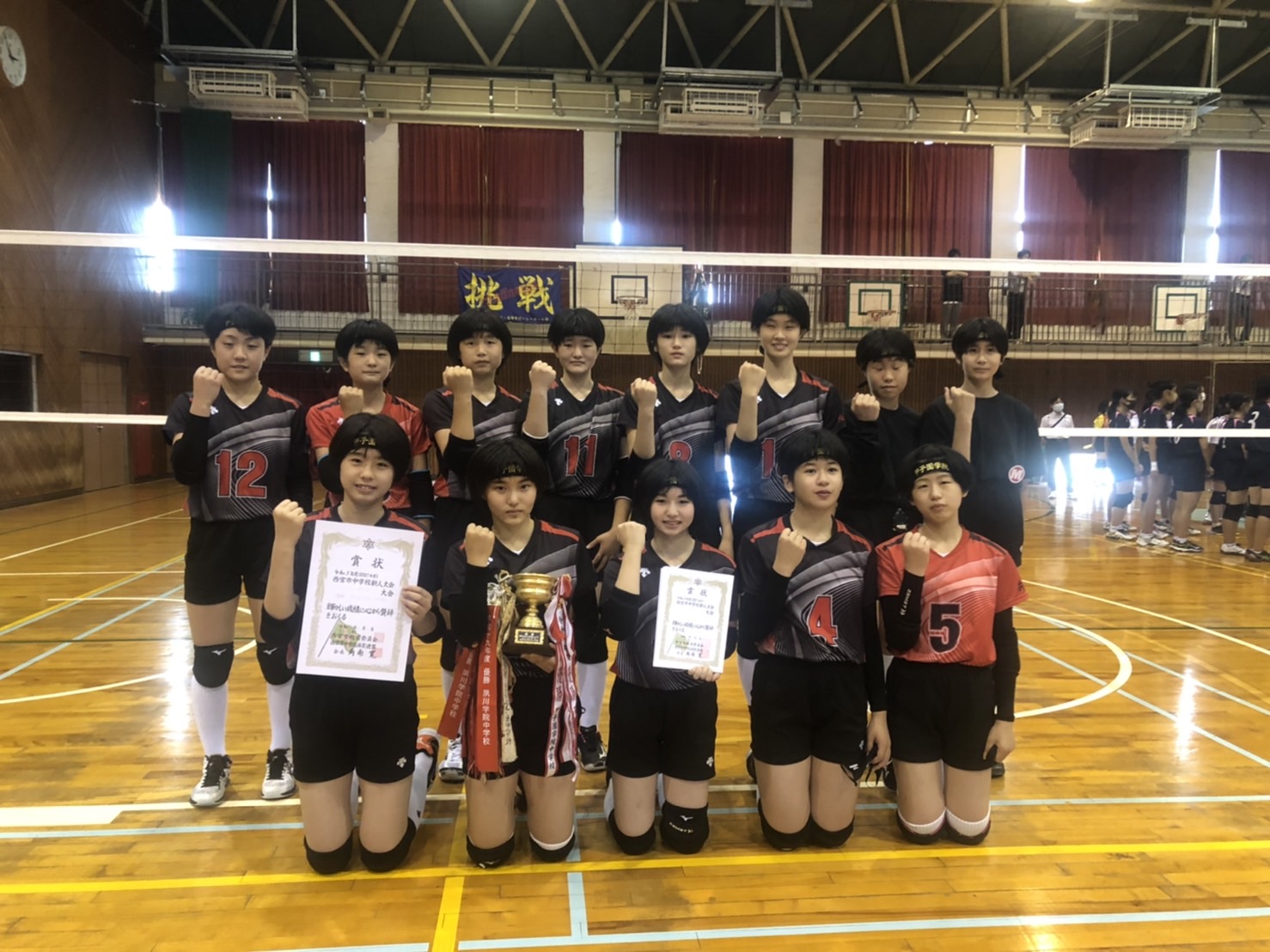 10月2日(土)、西宮市立上ヶ原中学校にて、令和3年度西宮市中学校新人大会(第64回中学校男女バレーボール競技大会)女子の部の決勝トーナメントが行われ、本校中学校バレーボール部が見事優勝しました。