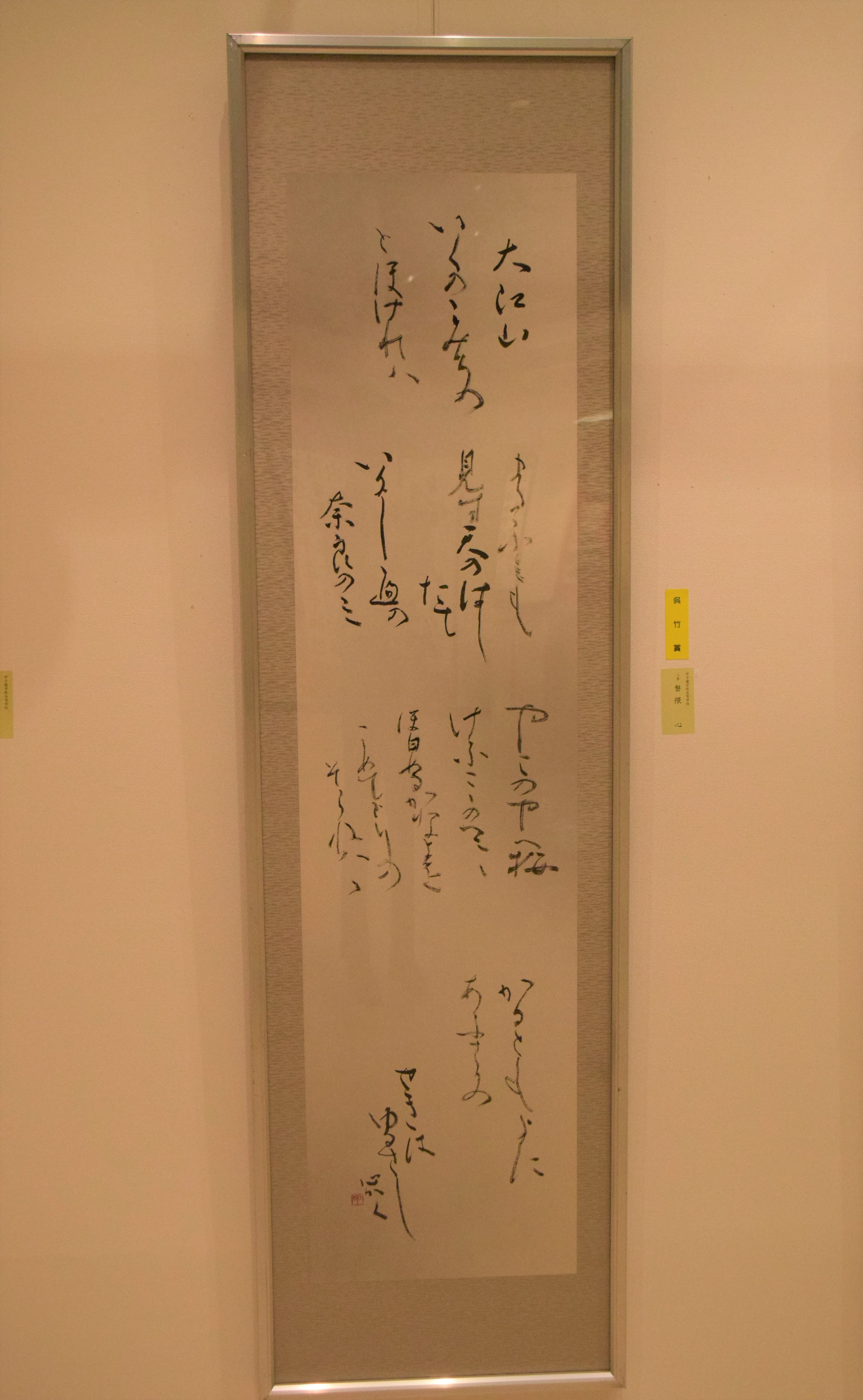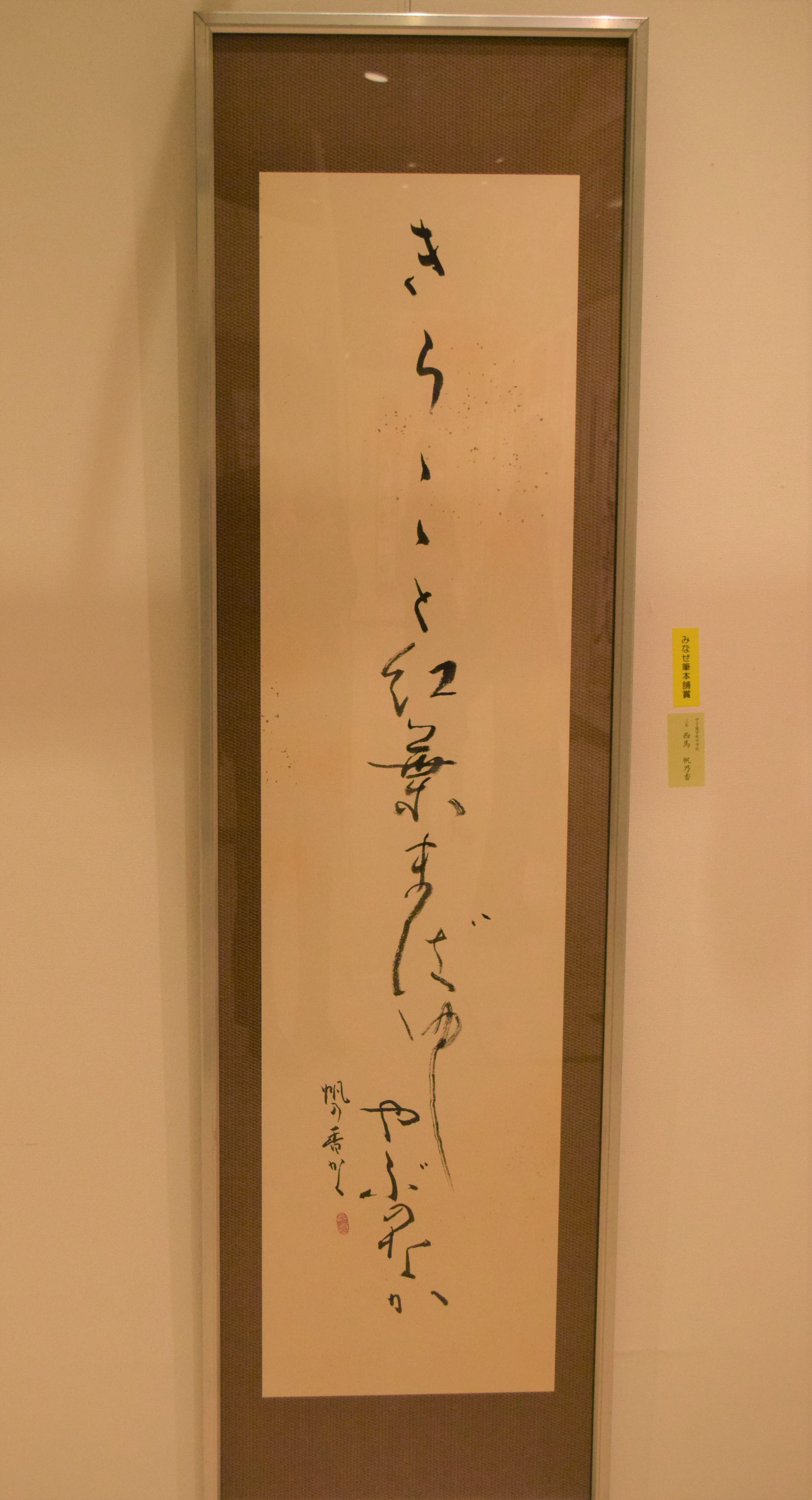 高等学校3年生の磐隈心さんの作品が特別賞(呉竹賞)、中学校3年生の西馬帆乃香さんが特別賞(みなせ筆本舗賞)、甲子園学院小学校2年生児童の作品が特別賞(一休園賞)を受賞しました。
