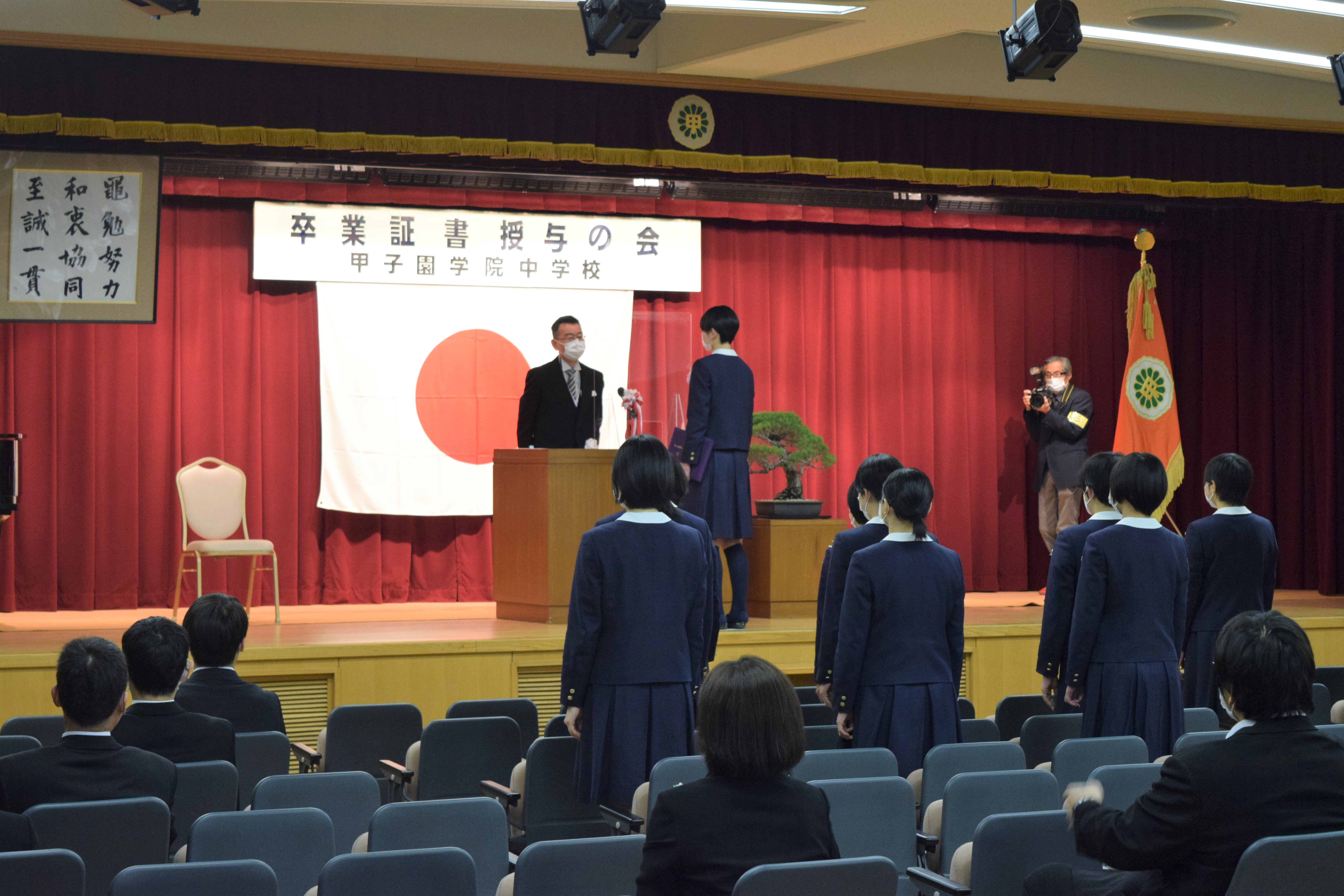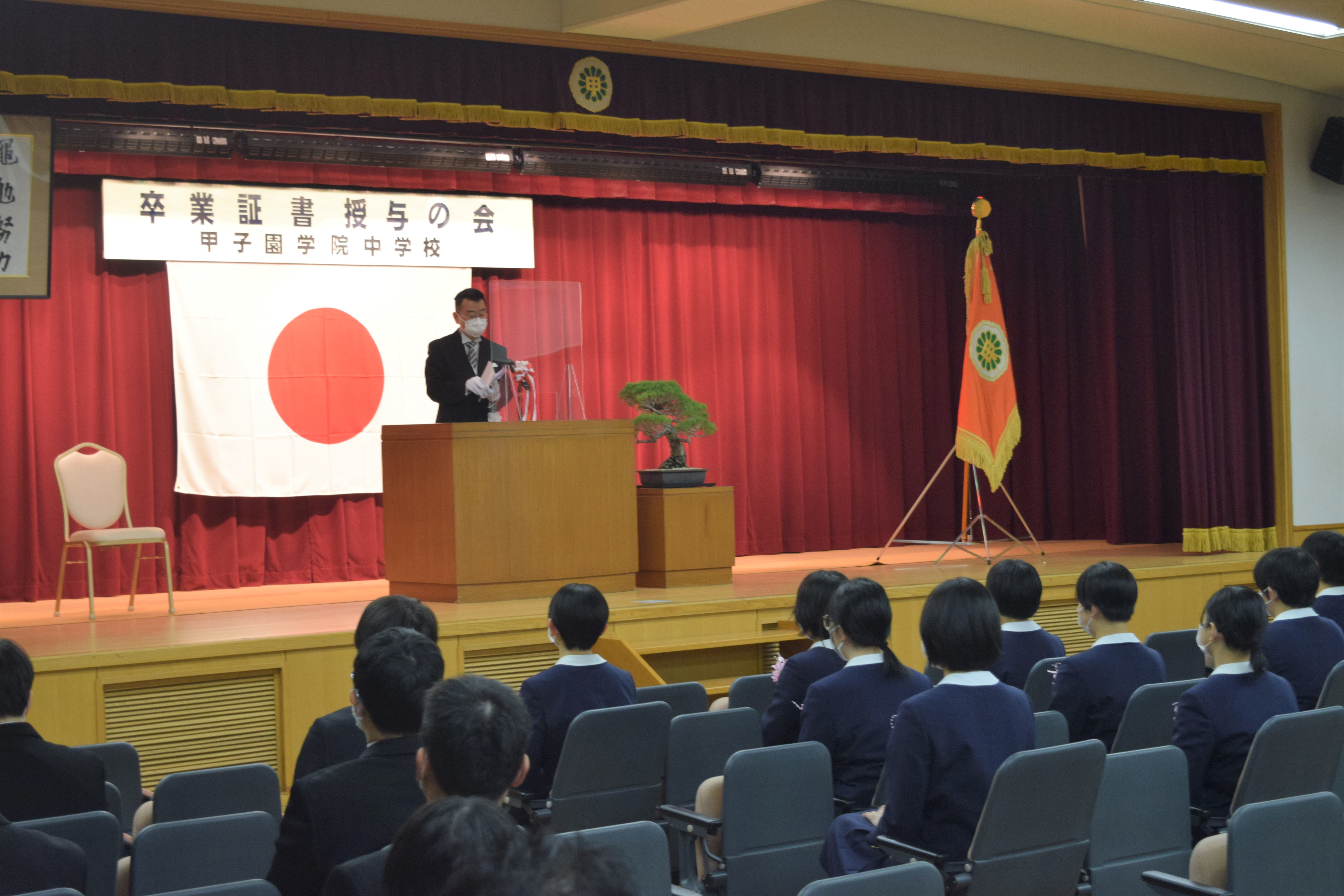 甲子園学院中学校では、9年間の義務教育の区切りとして、毎年卒業証書授与の会を実施しています。