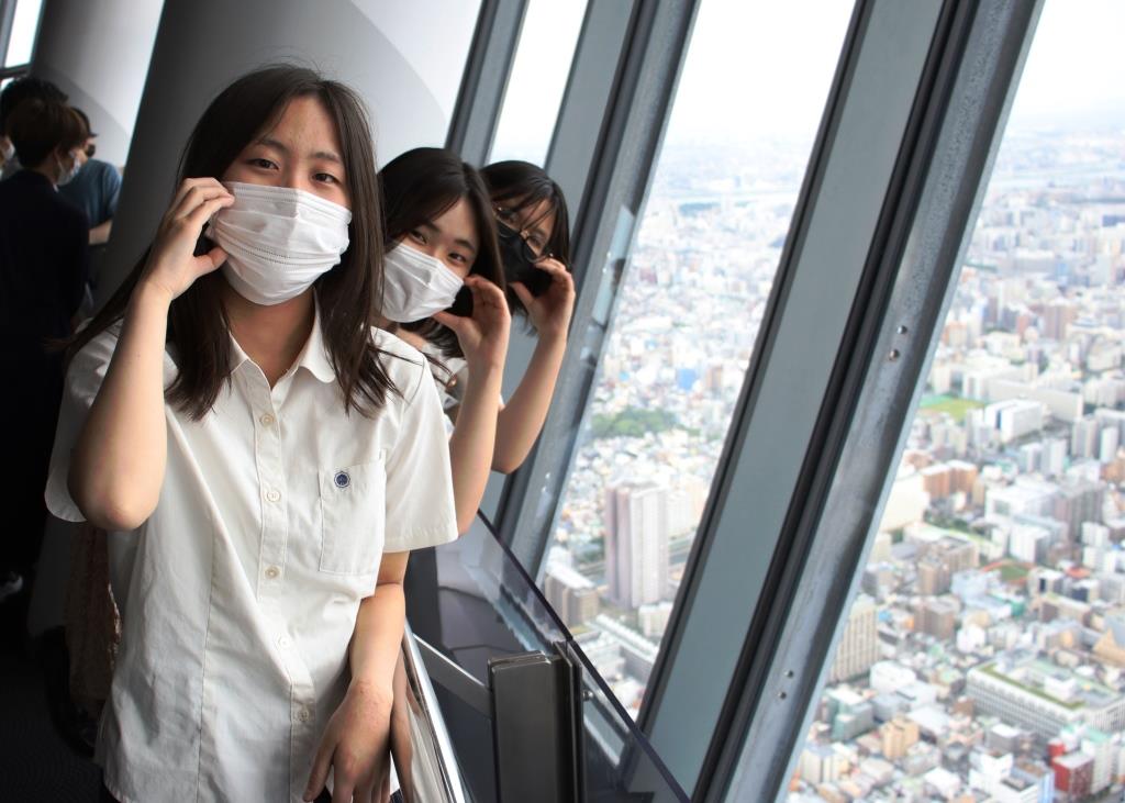 次に、班毎に浅草の仲見世通りの散策を楽しんだ後、東京スカイツリーにのぼり、東京の街を一望しました。