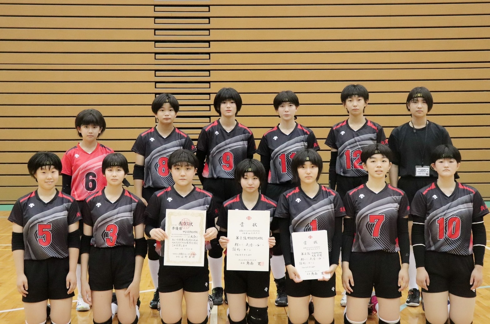 7月27日(水)・28日(木)に、洲本市文化体育館にて行われました令和4年度(第66回)兵庫県中学校総合体育大会バレーボール競技大会において、本校中学校バレーボール部が準優勝しました。