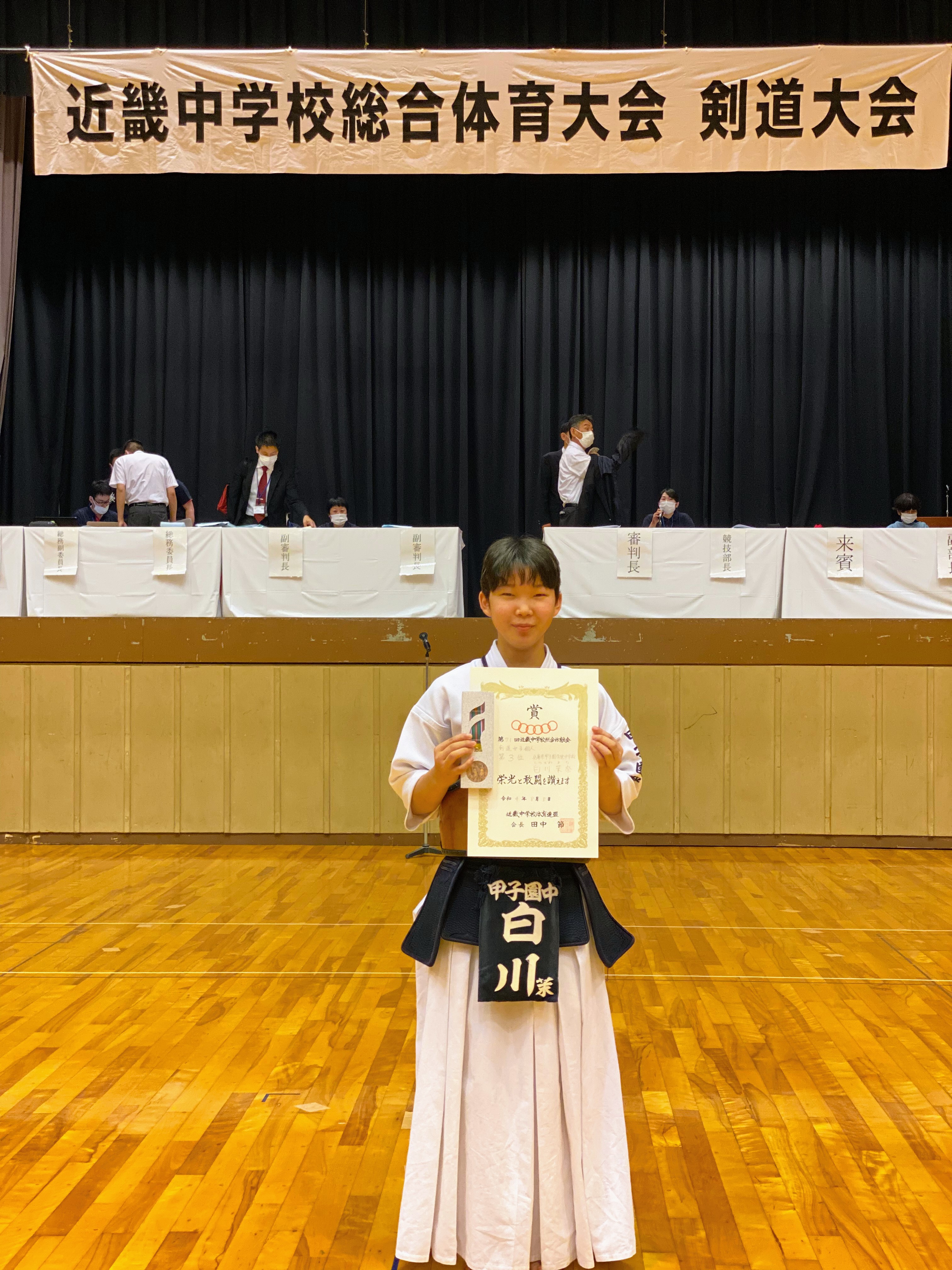 団体戦では、惜しくも予選リーグで敗退しましたが、個人戦で白川茉奈さん(中3)が3位に輝きました。