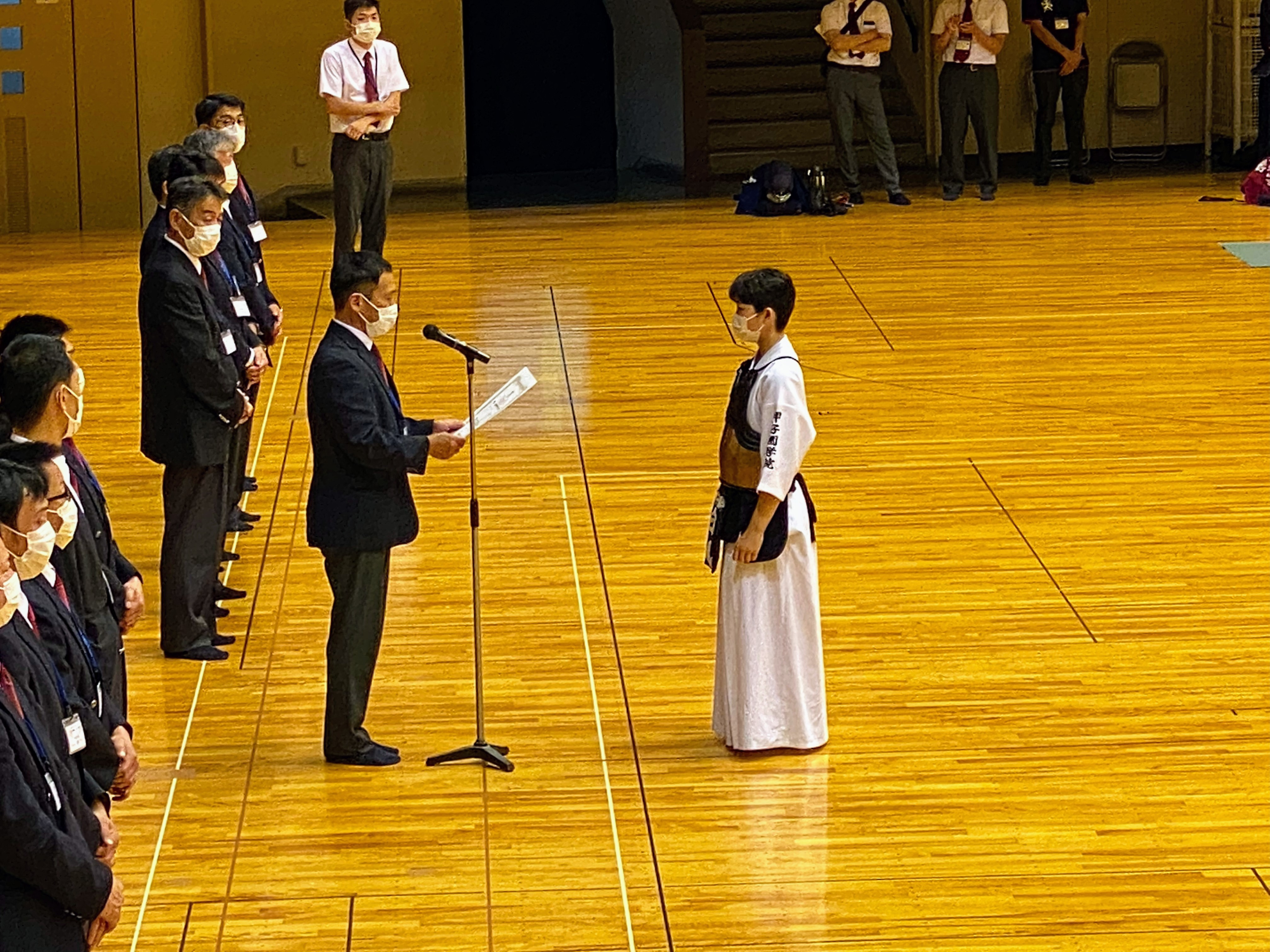 中学校剣道部顧問の濵﨑美久(教諭)は、本校中3時に生徒として全国大会に出場し、今回は指導者として、県大会優勝、近畿大会出場という実績を重ね、全国大会への切符を勝ち取りました。