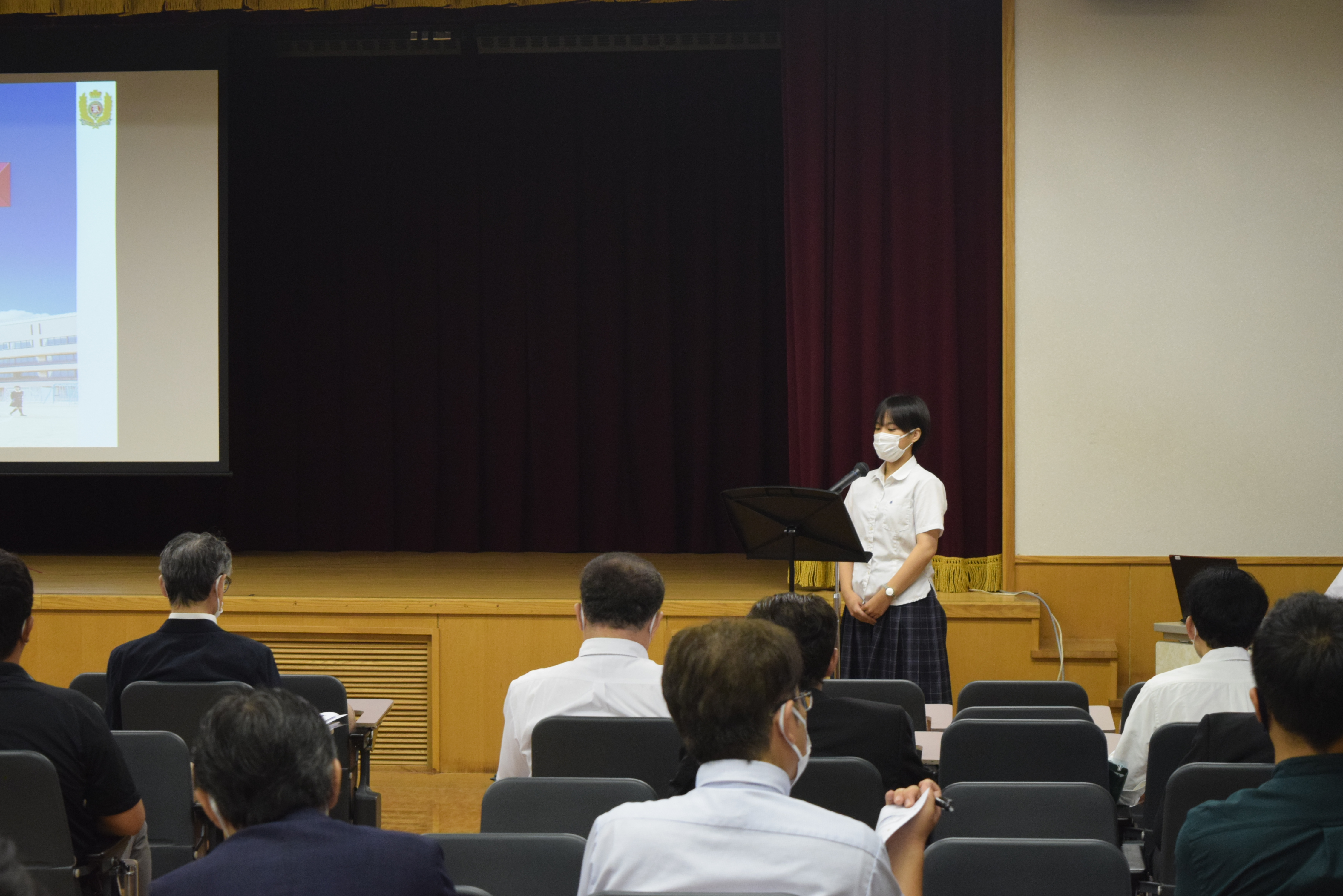 今年度も感染症対策を行いながら、初めに、公開部活動として本校吹奏楽部の歓迎演奏をお聴きいただいた後、全体説明会を行い、中学校での取り組みや高等学校新コース制に加え、2023年(令和5年)度入試の概要について説明いたしました。