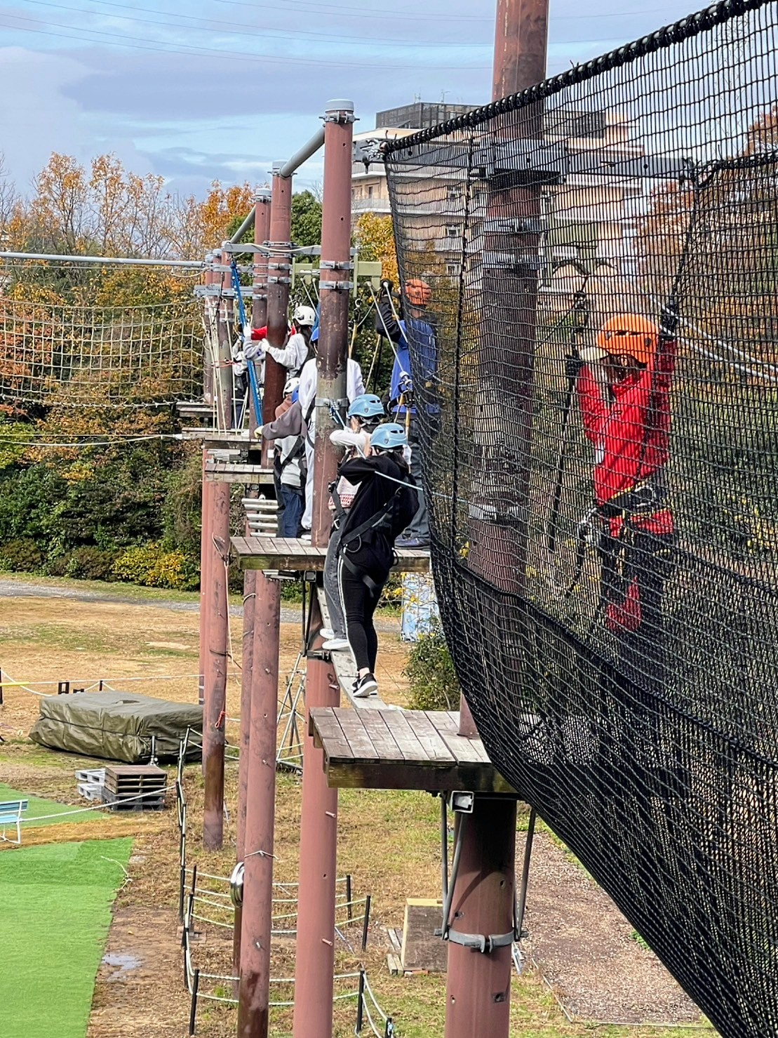 1年生は神戸市北区にあるアスレチック・アドベンチャー施設ソラカケル、2年生は京都・嵐山に向かいました。
