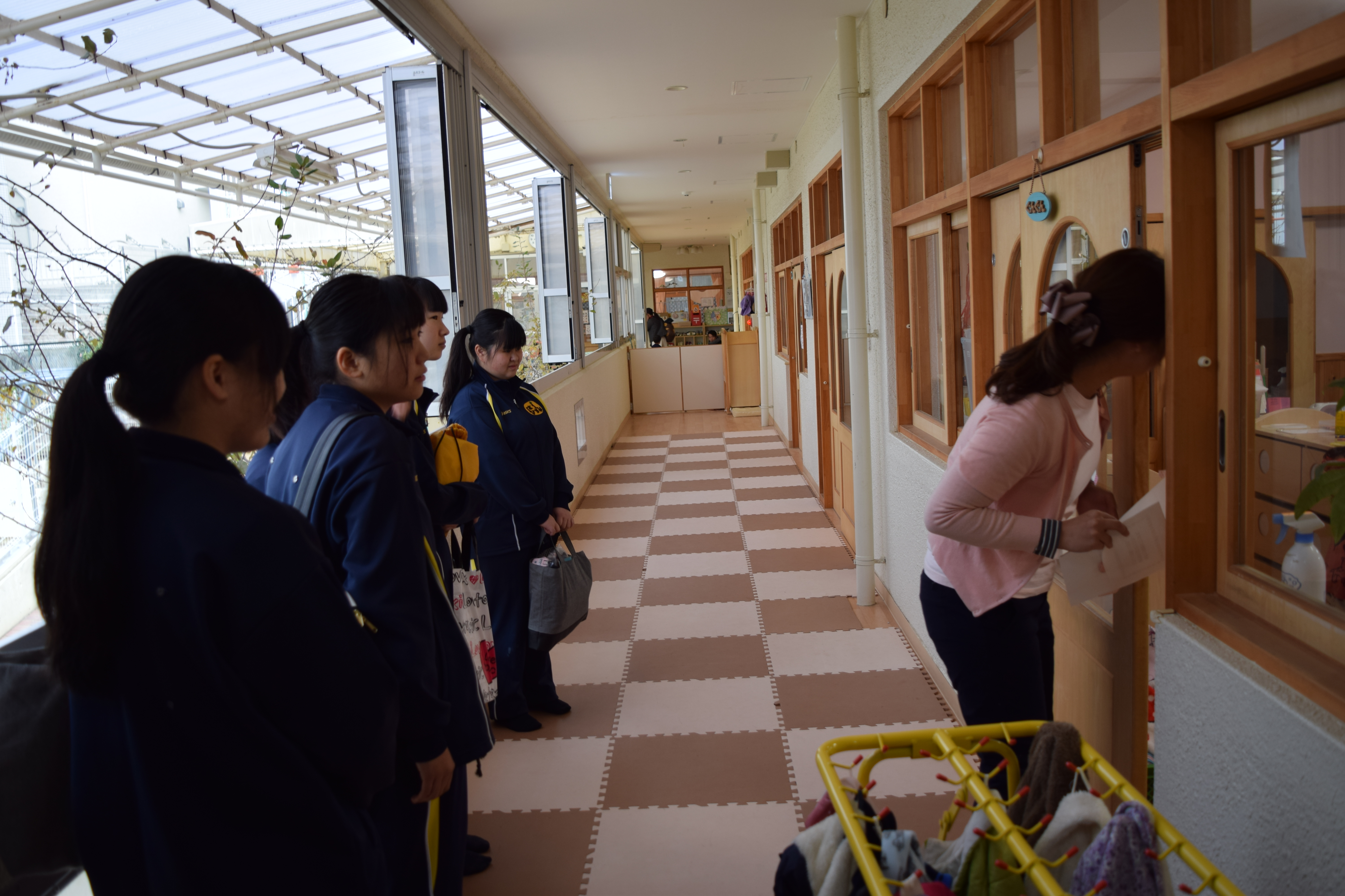12月7日(木)~20日(火)までの期間、高等学校2年生 5年一貫幼児教育コースの生徒は、はっとこども園となかはらこども園とに分かれて、保育実習へ行っています。