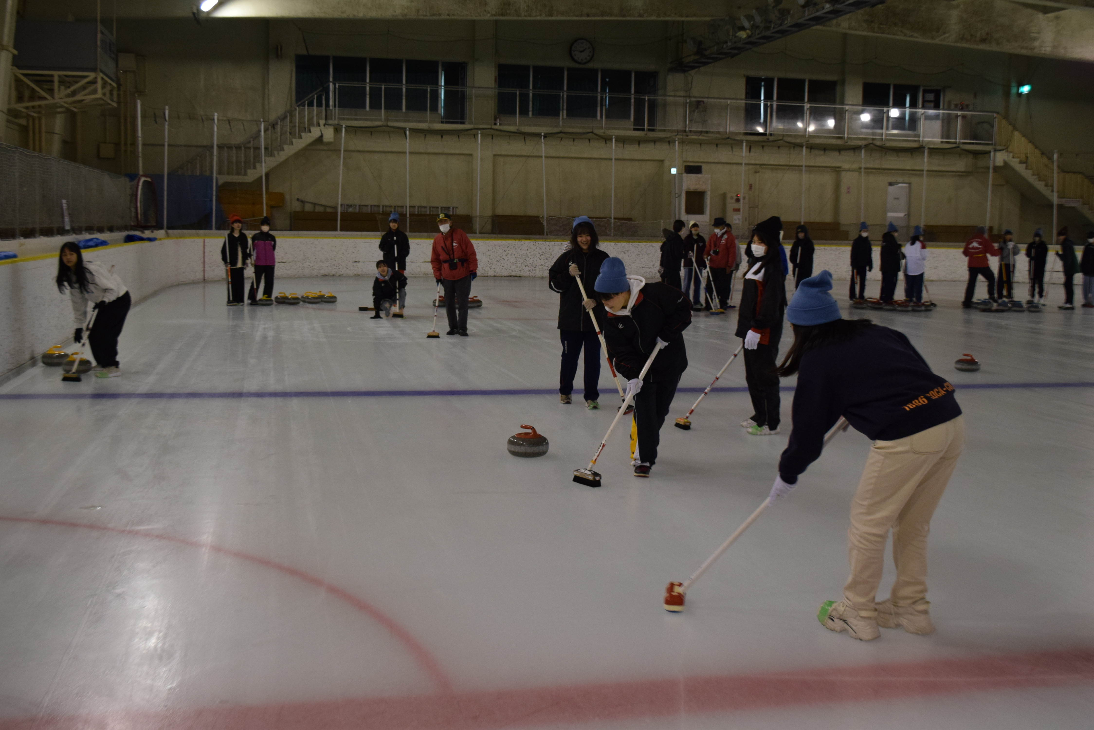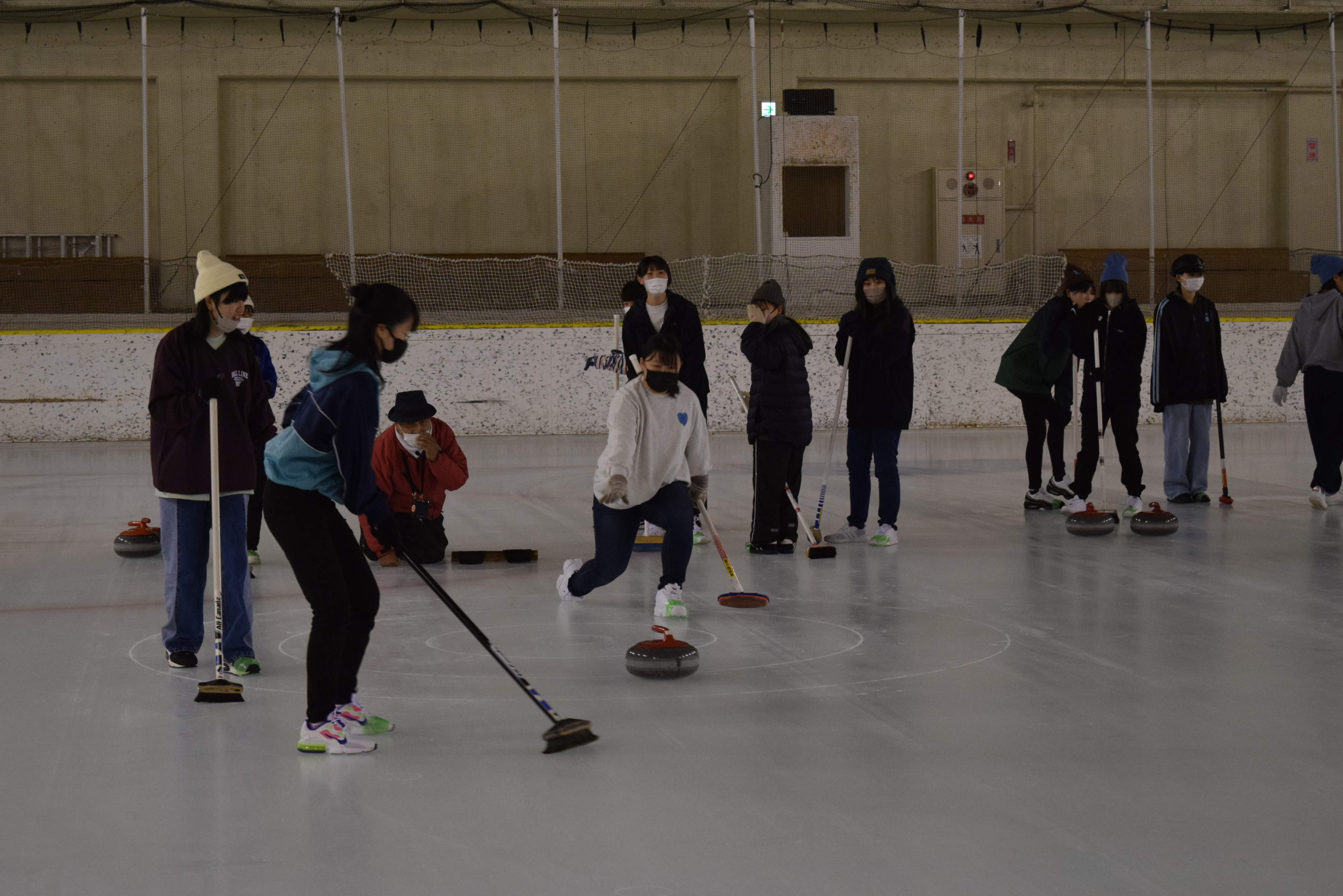その後、生徒たちはカーリング体験とえこりん村散策の2つのグループに分かれました。