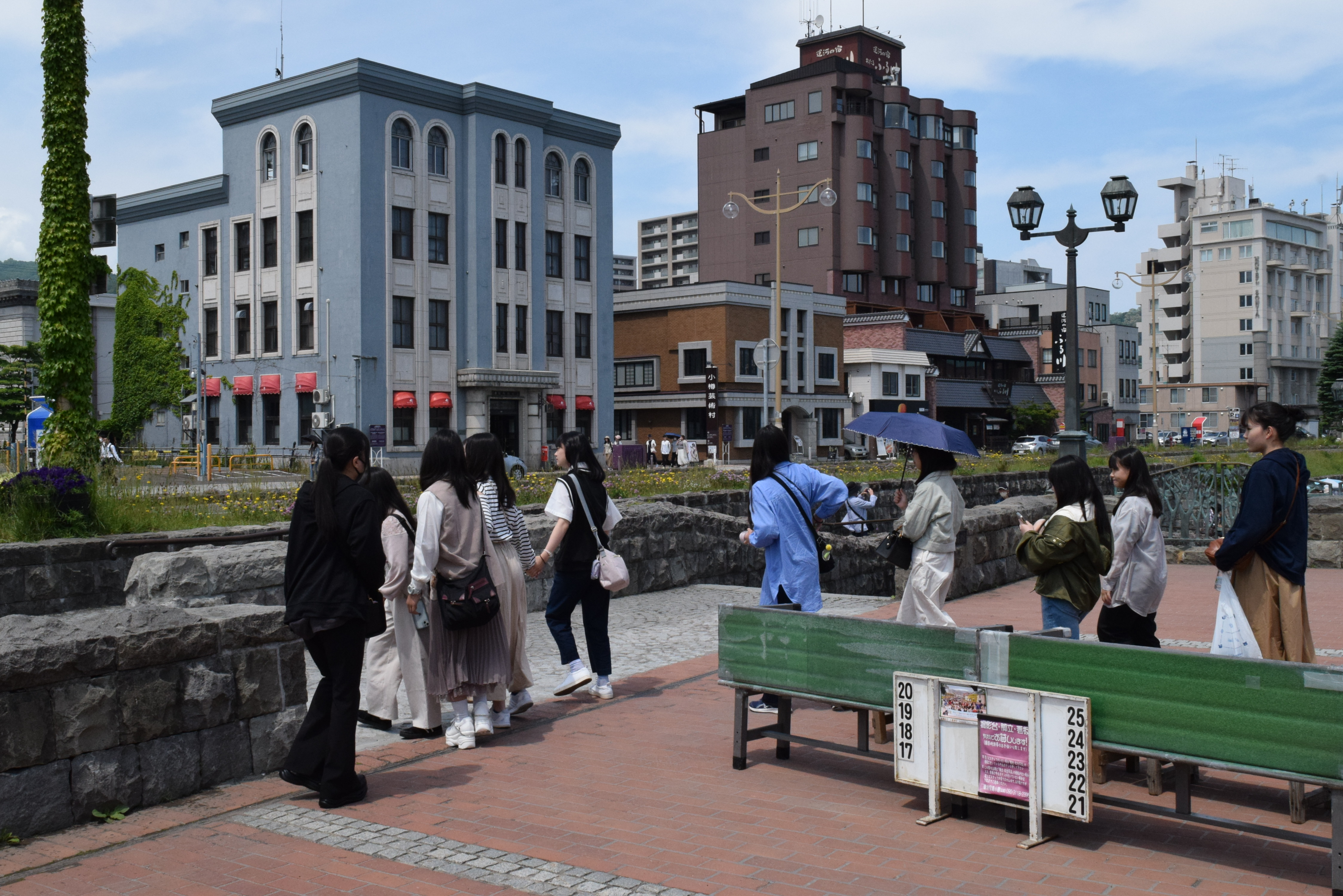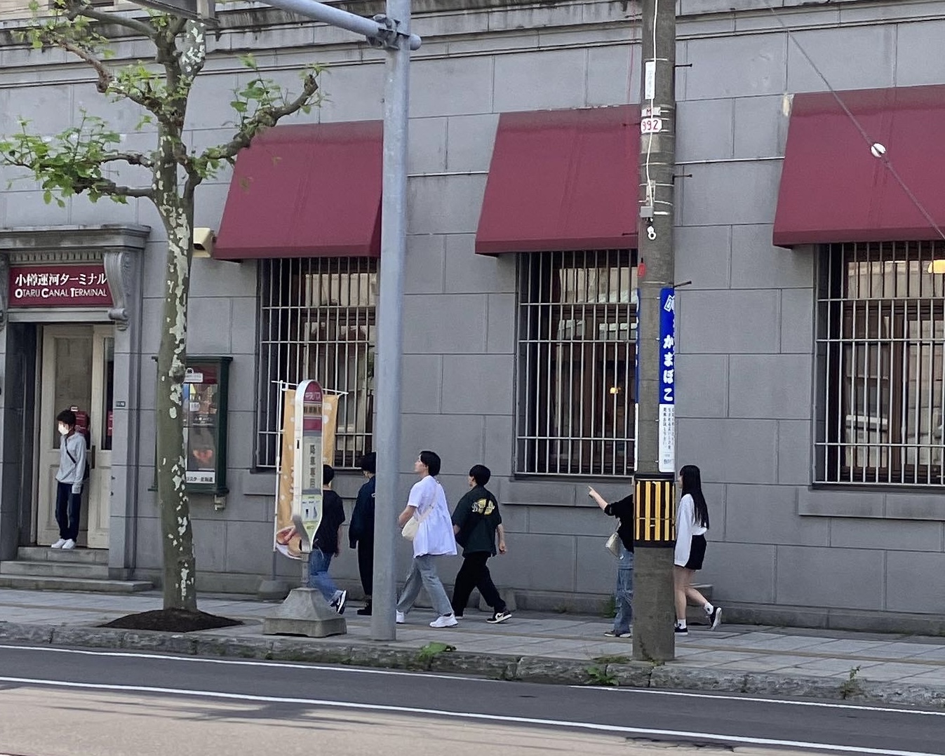 まず小樽運河を背景に写真を撮り、その後各班に分かれて行動しました。