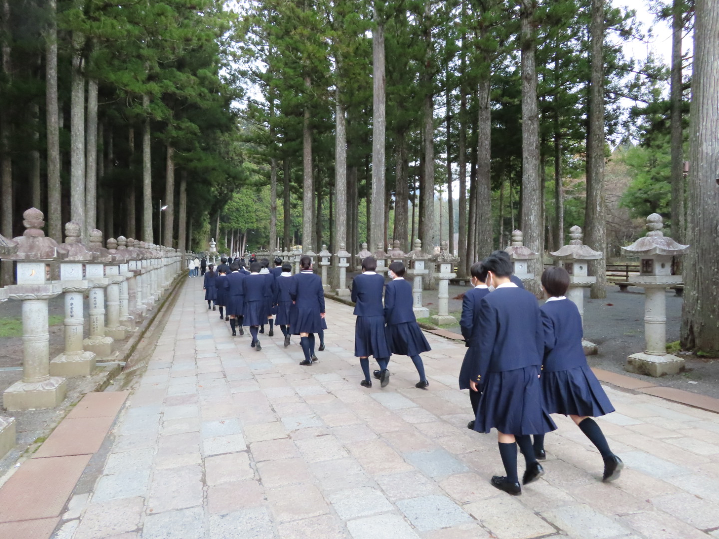 生徒たちは午前8時20分に集合し、貸切バスで高野山へ向かいました。