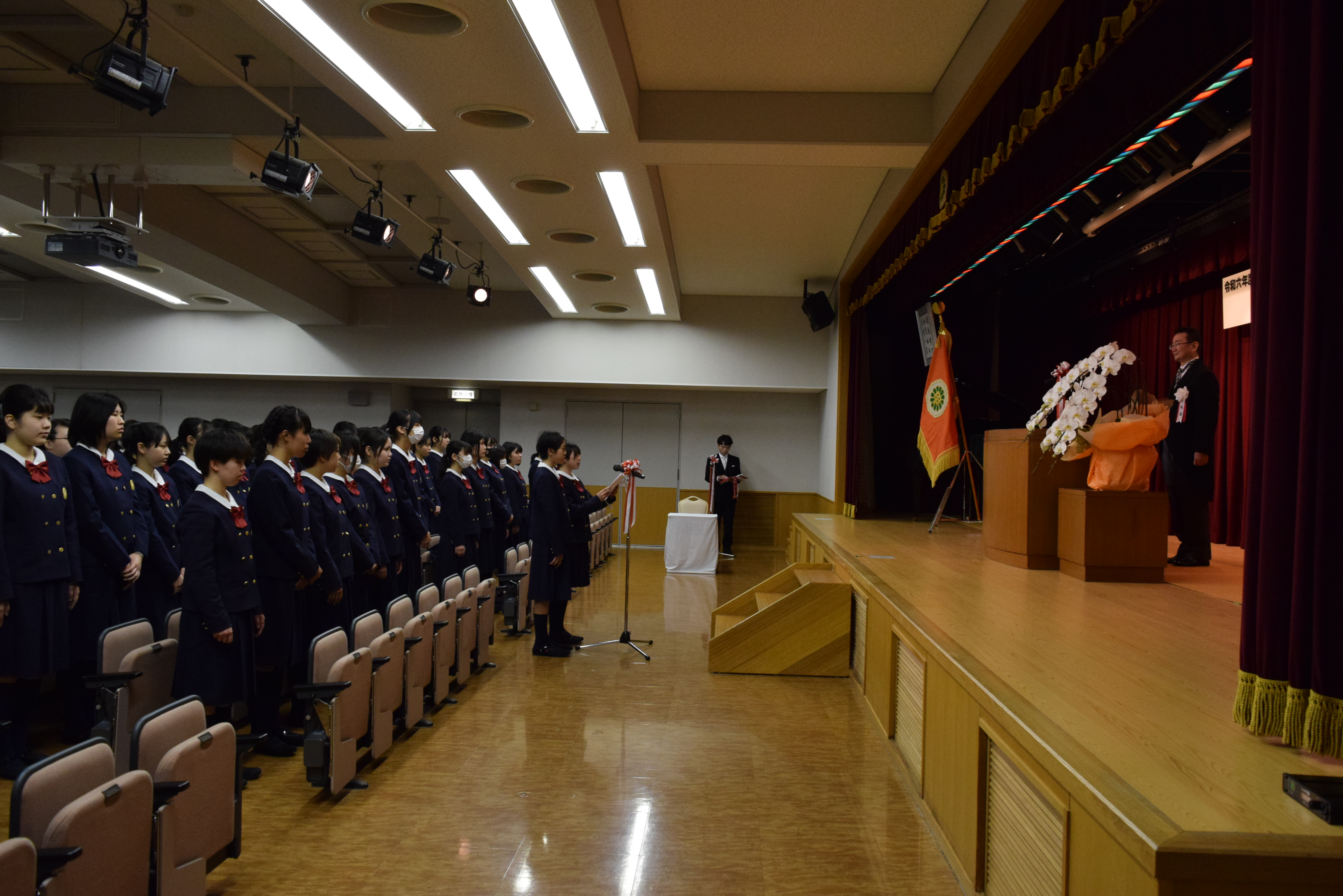 心配されていた天候にも恵まれ、新しい制服に身を包んだ新入生は、緊張した面持ちで保護者とともに登校し、期待と不安を胸に式に臨みました。