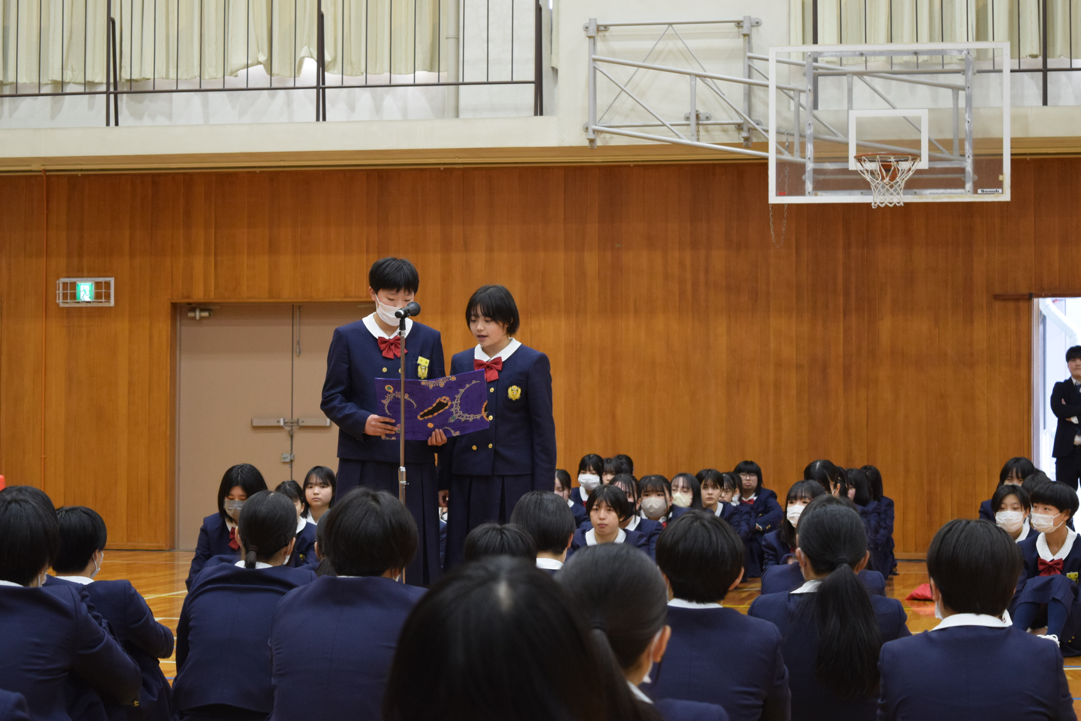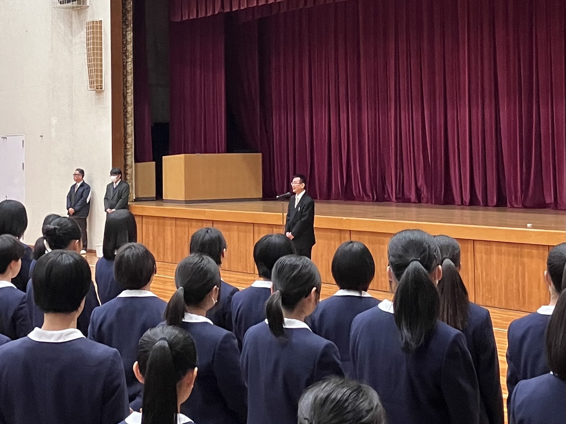 そして生徒会役員からの花束贈呈や吹奏楽部の歓迎の演奏もあり、式場は歓迎ムードに包まれました。