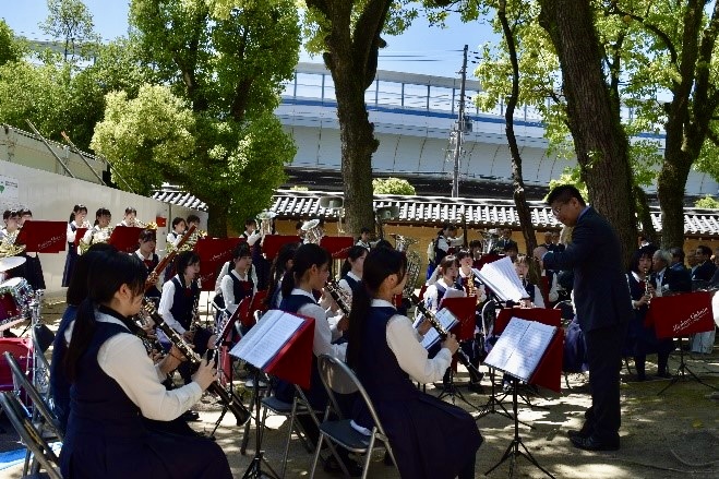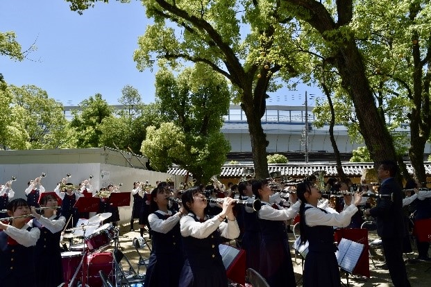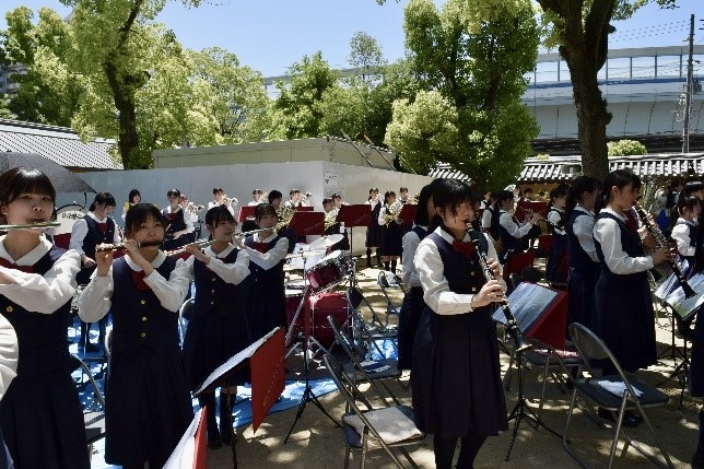 5月5日日曜日、西宮神社関西吹奏楽功労者の碑前広場にて行われました太々神楽祭/えべっさんこどもまつり「関西吹奏楽の日」に、本校吹奏楽部が参加しました。