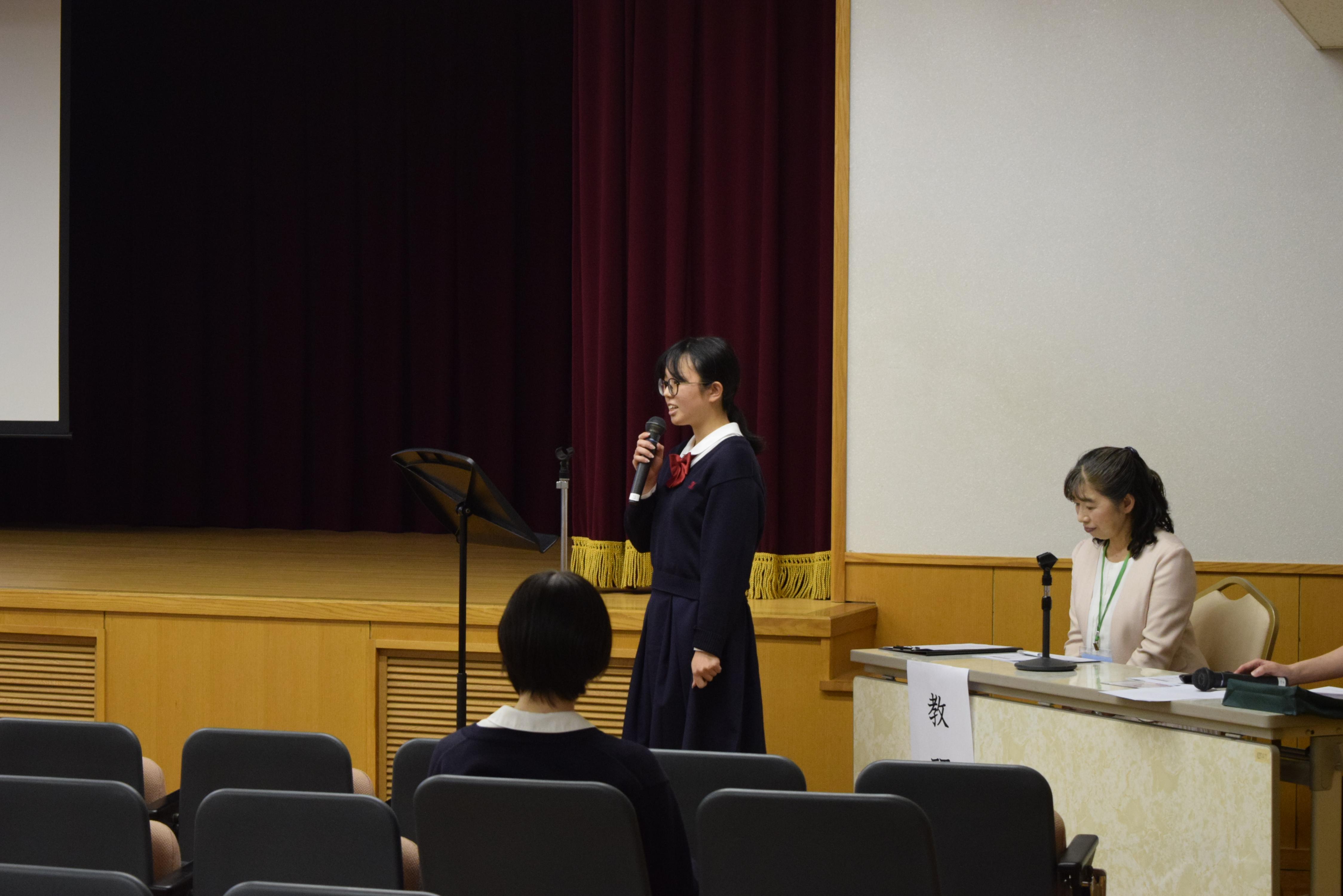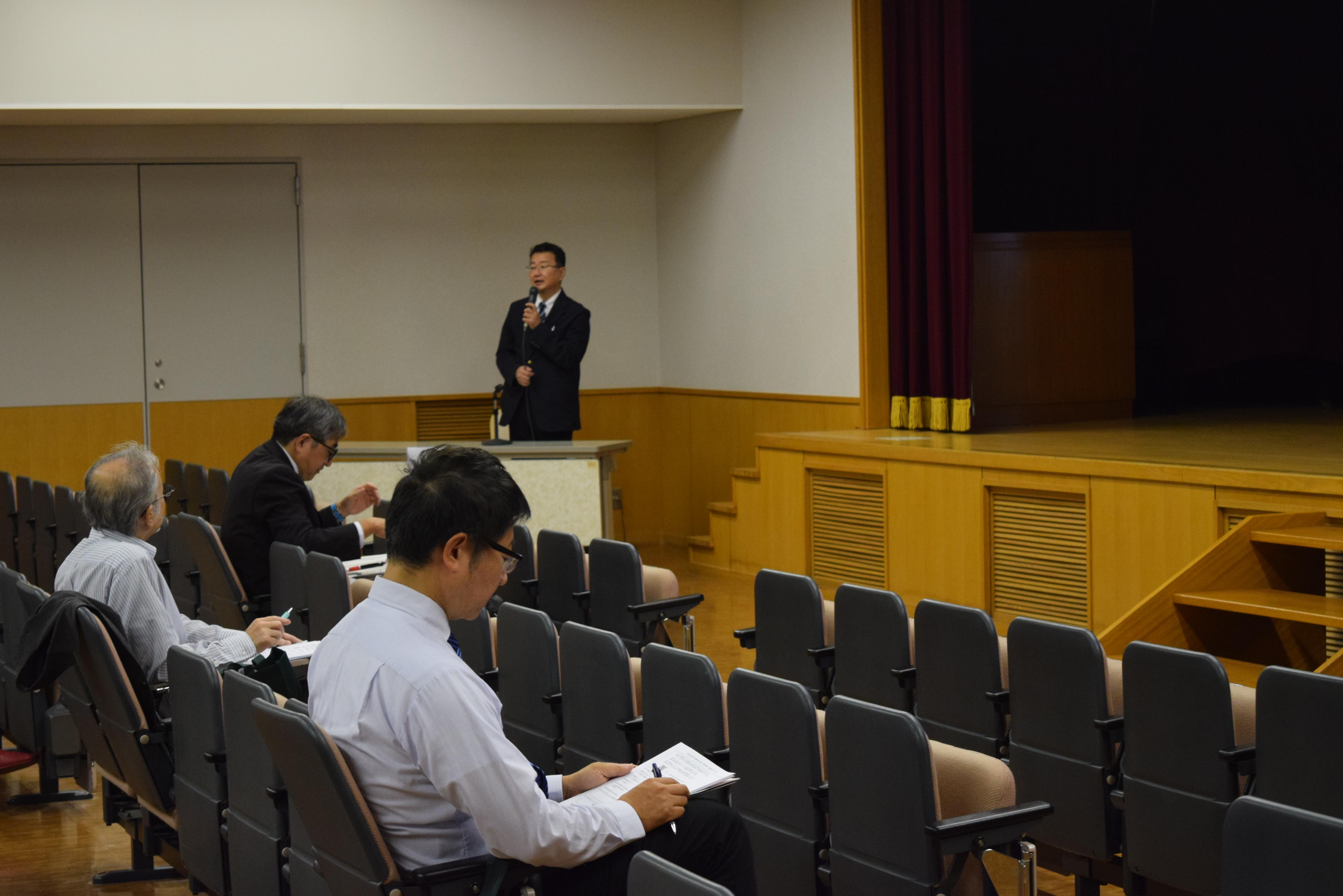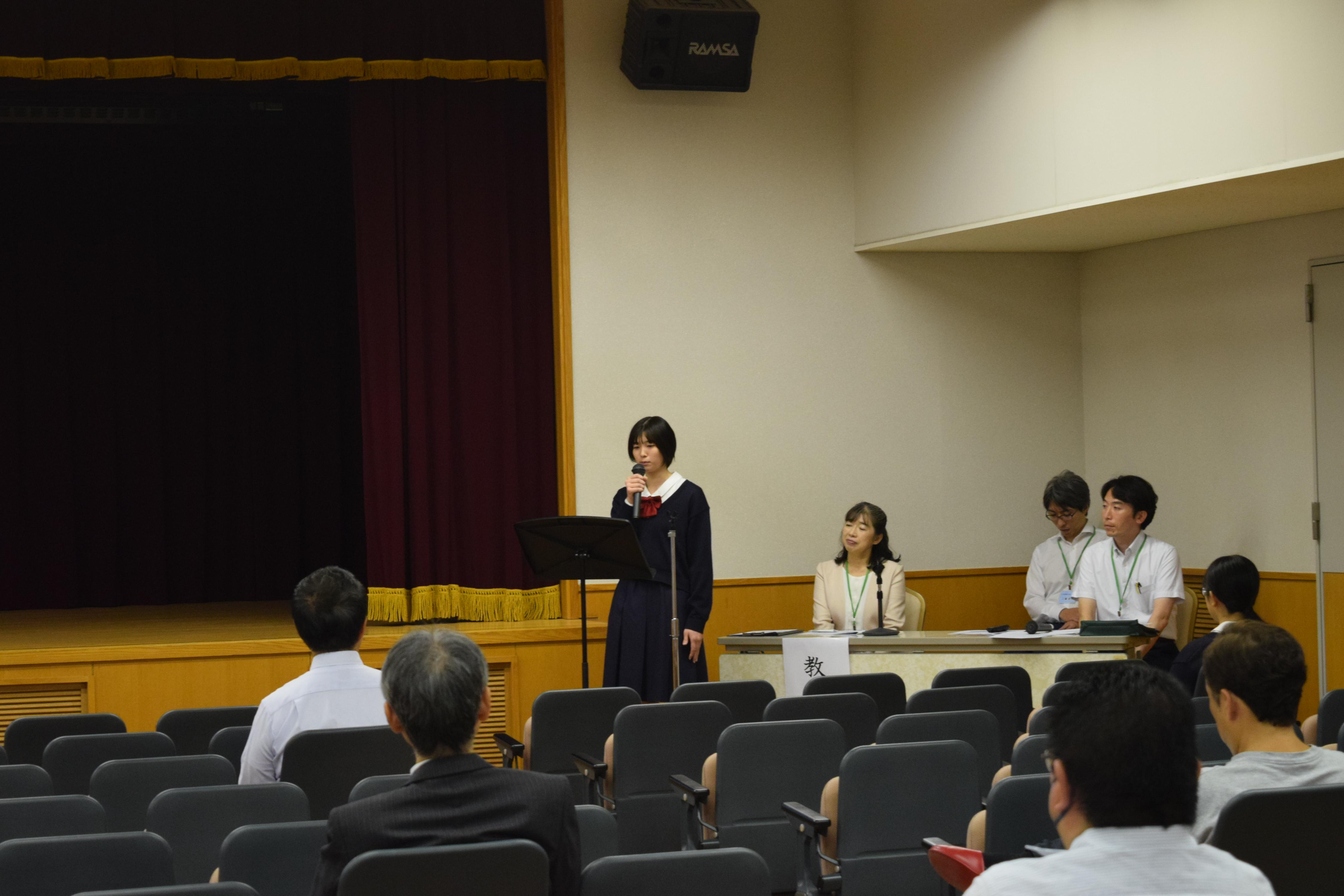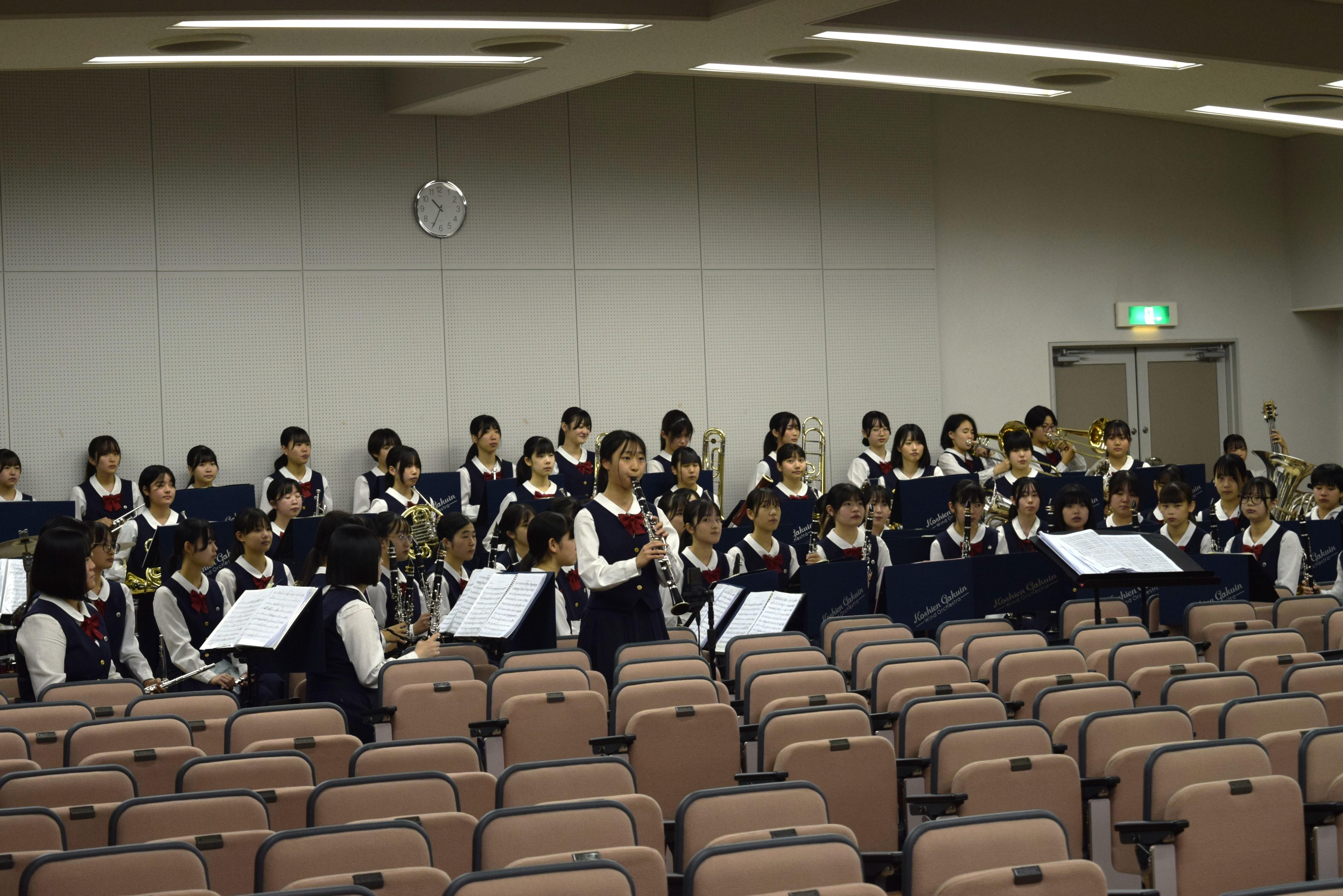 初めに、吹奏楽部の歓迎演奏をお聴きいただいた後、中学校での取り組みや高等学校のコース制、2025年(令和7年)度入試の概要について説明いたしました。