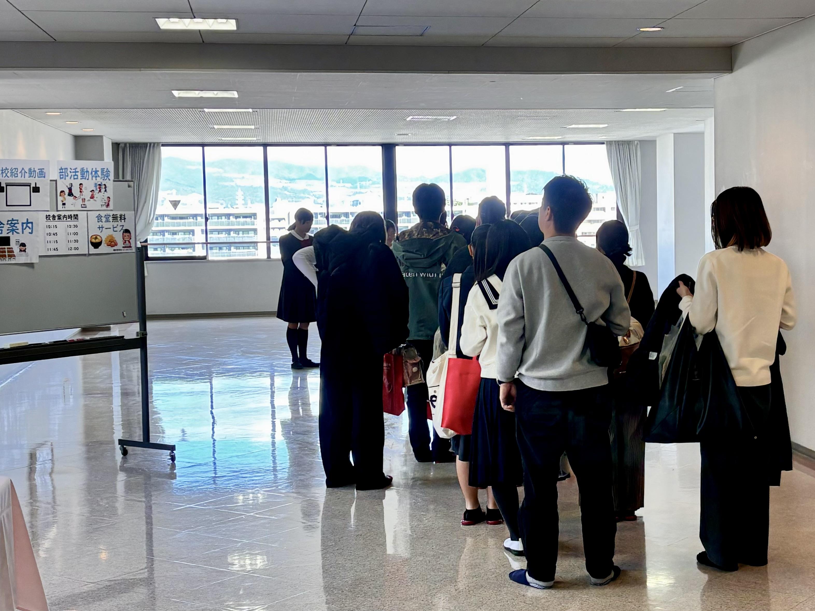 今年度最終回のオープンスクールでは、学校案内動画の視聴・校舎見学をはじめ、制服試着、食堂無料サービス、部活動体験、個別相談などのメニューを用意しました。