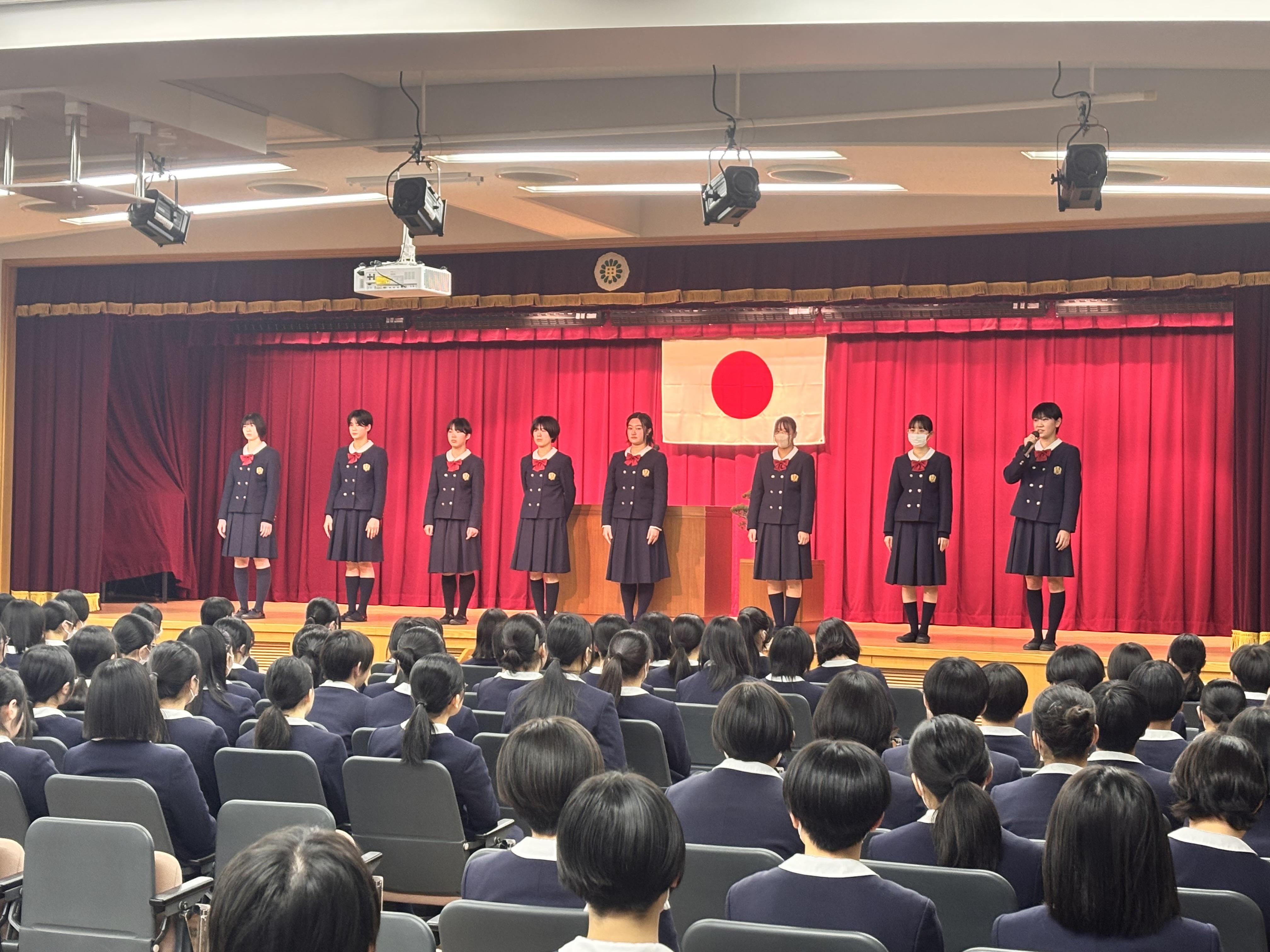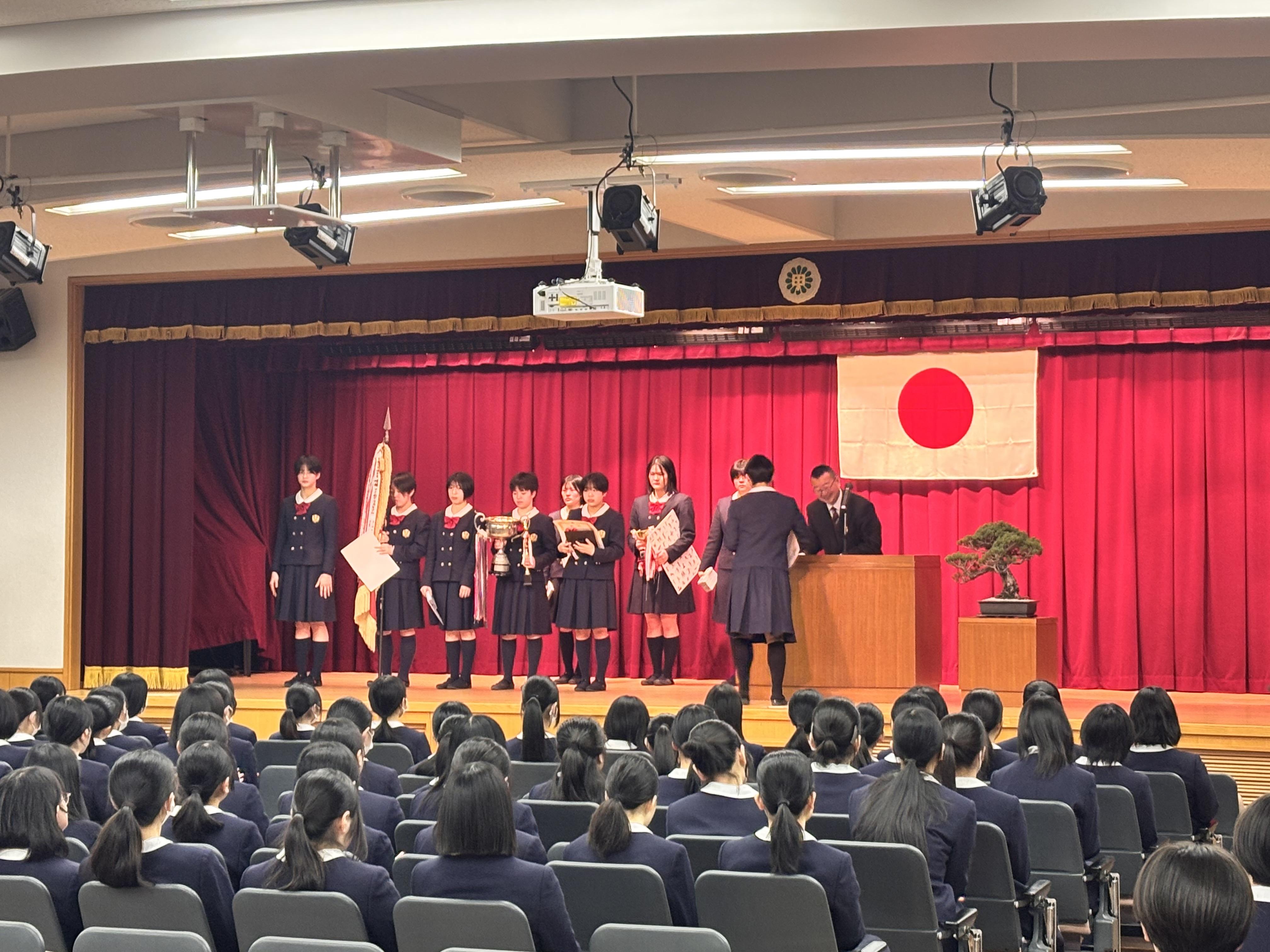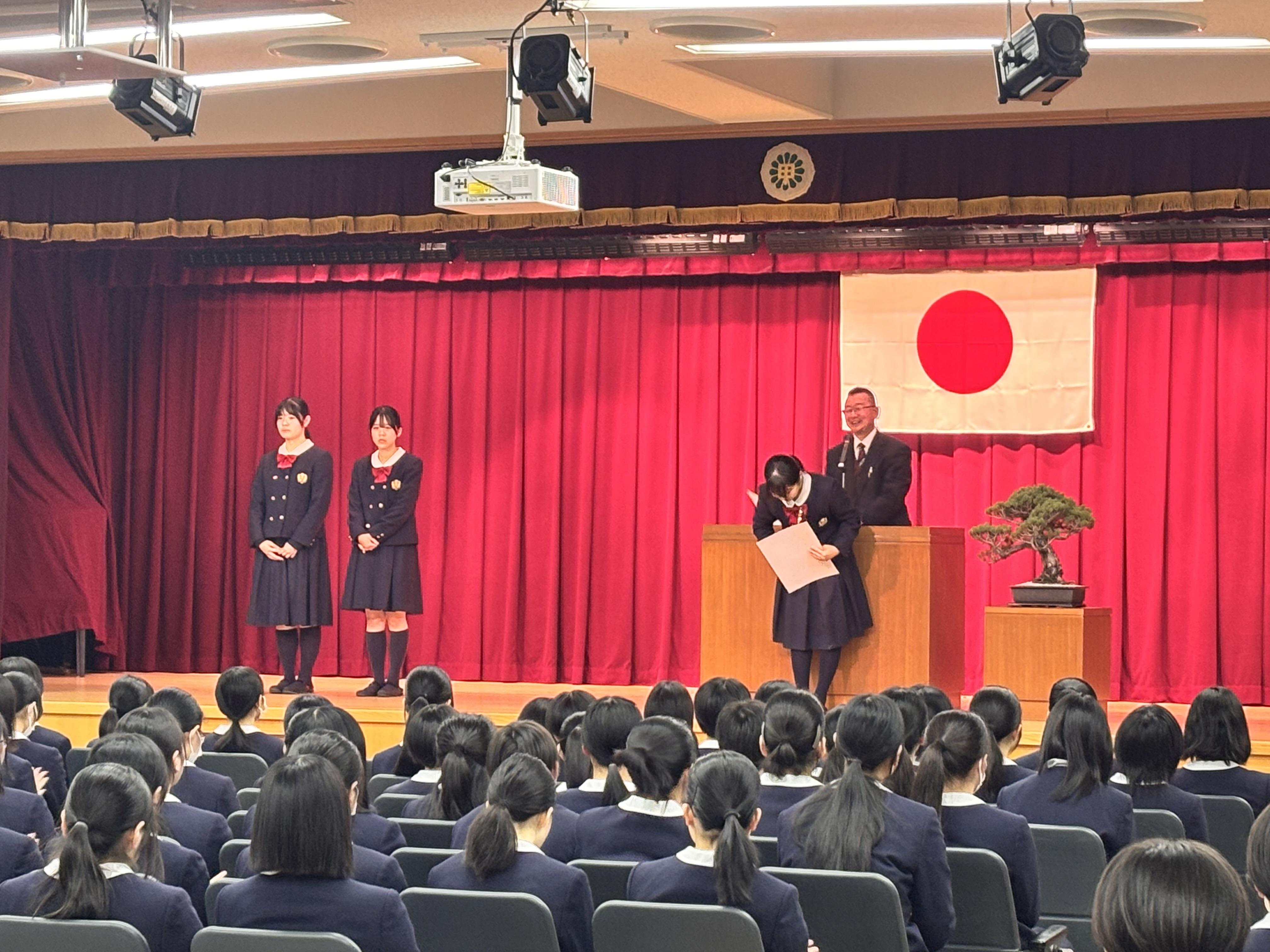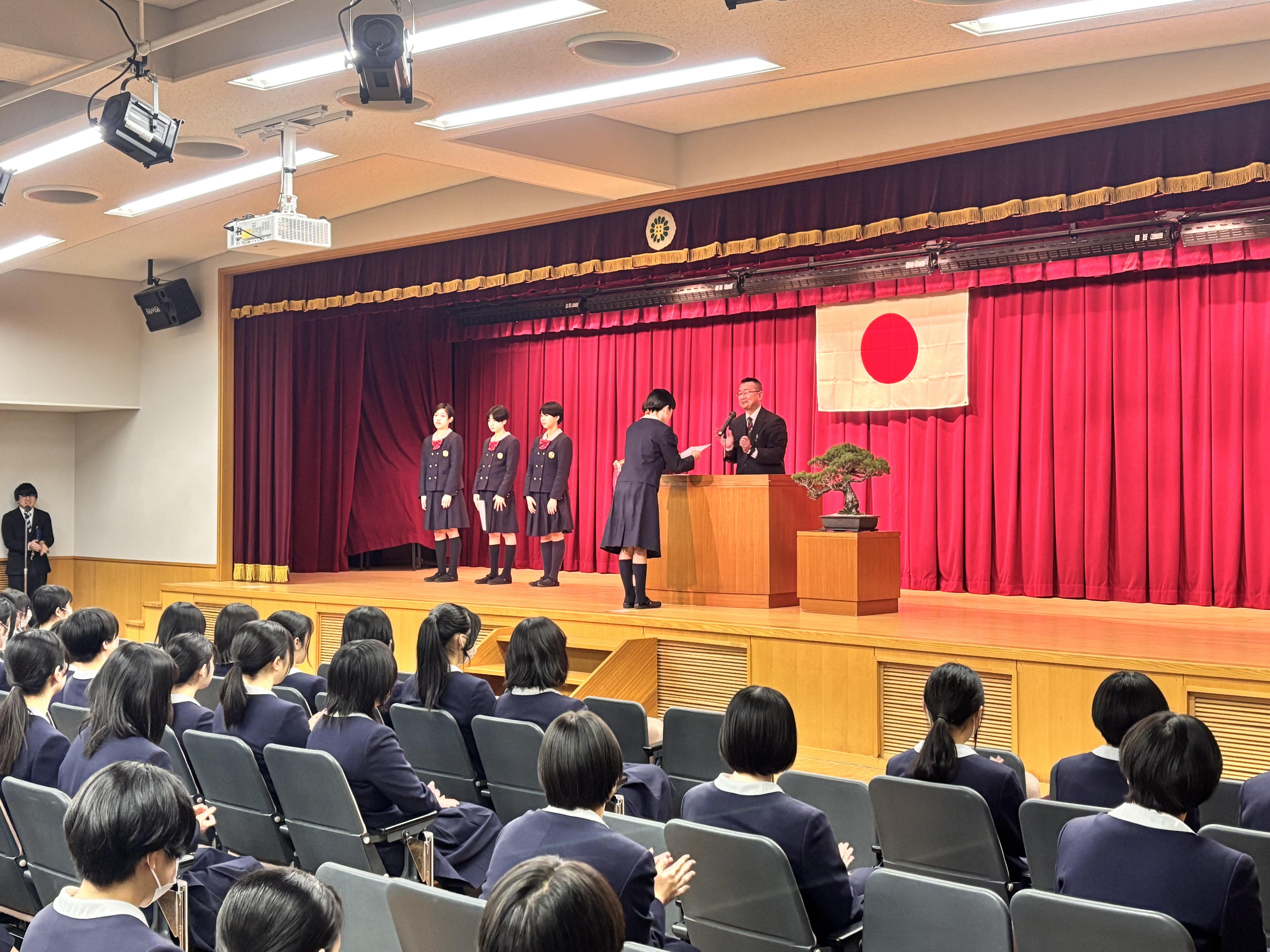 その後、私学の書展や各部活動などで活躍した生徒たちの表彰があり、令和6年度旧生徒会役員からの挨拶ならびに新生徒会役員候補者の紹介も行いました。