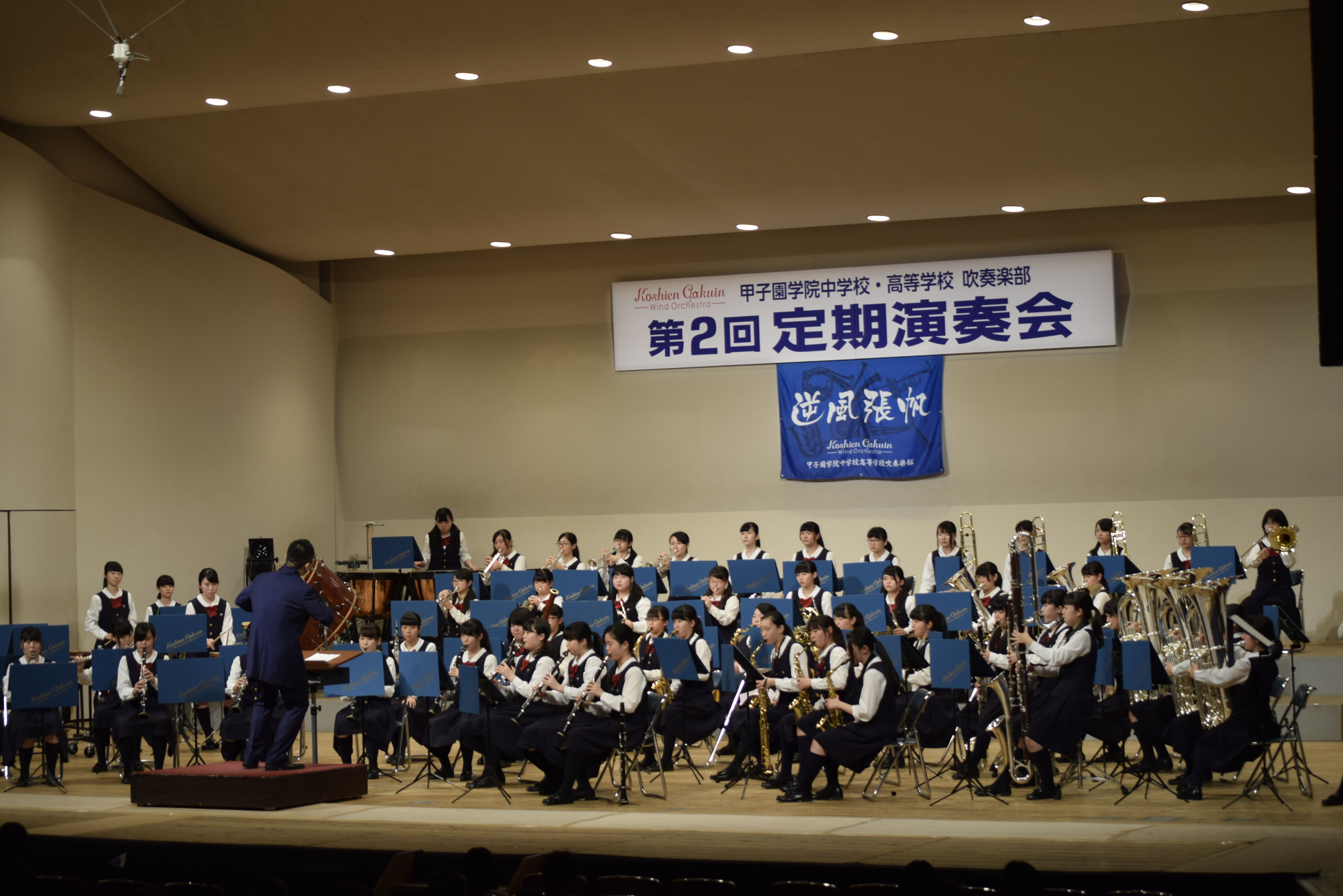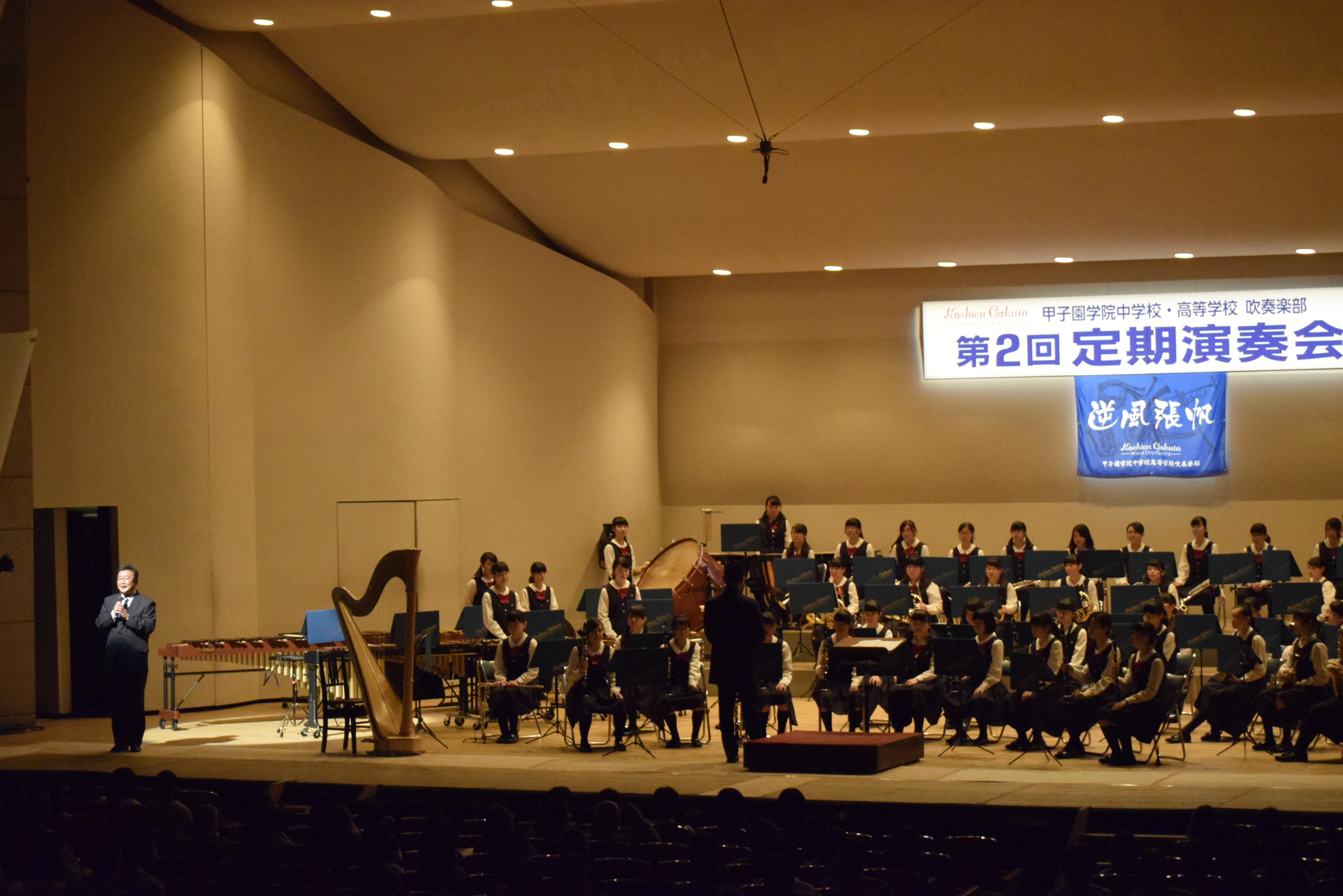 平成29年5月13日(土)、吹奏楽部による定期演奏会を西宮市民会館アミティホールにて行いました。今回の演奏会では、西宮市立上甲子園中学校吹奏楽部の皆さんに賛助出演していただきました。