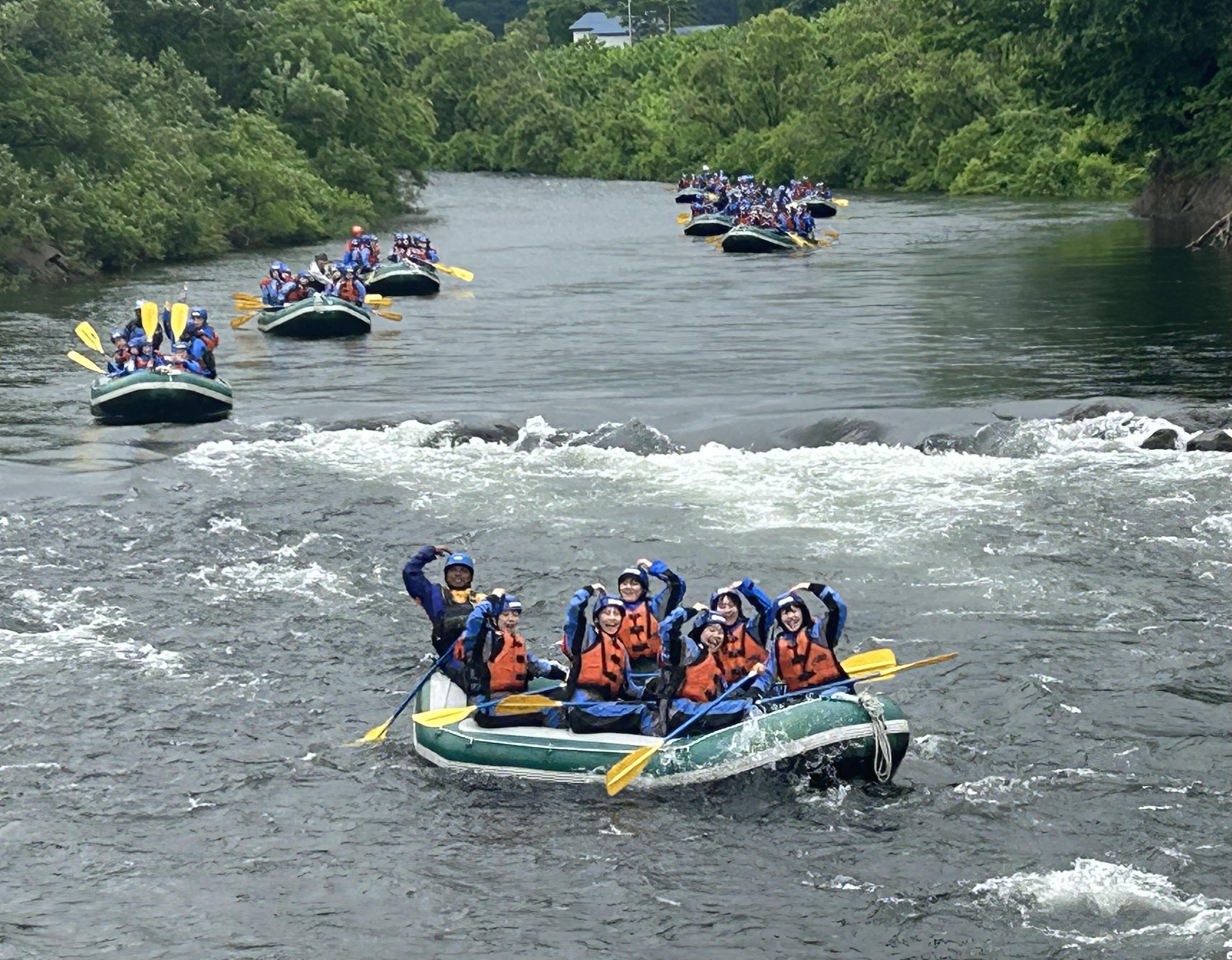 ラフティングでは、川に飛び込む生徒もいるほど気分が高揚したようで、皆楽しそうに川下りをしていました。