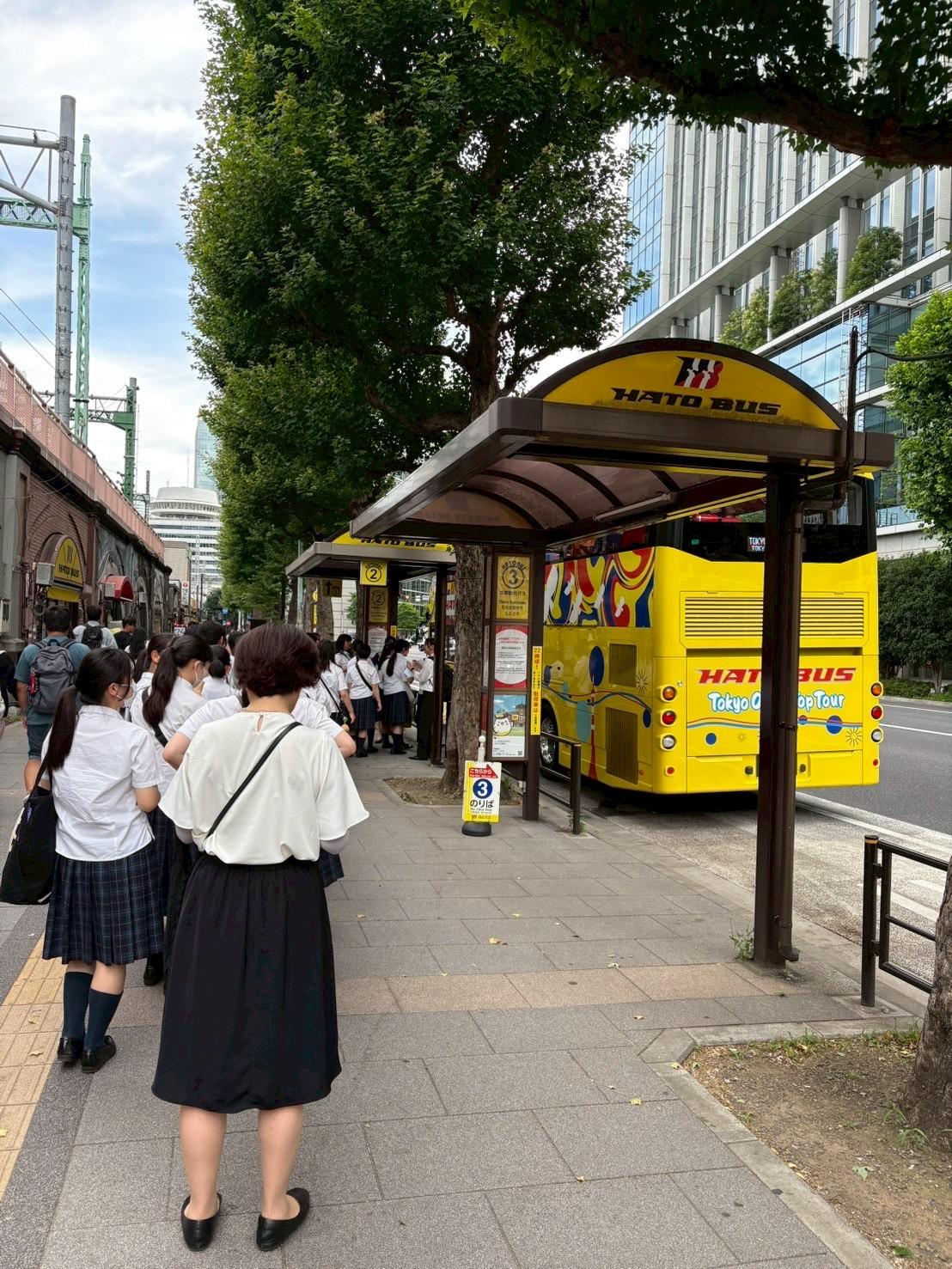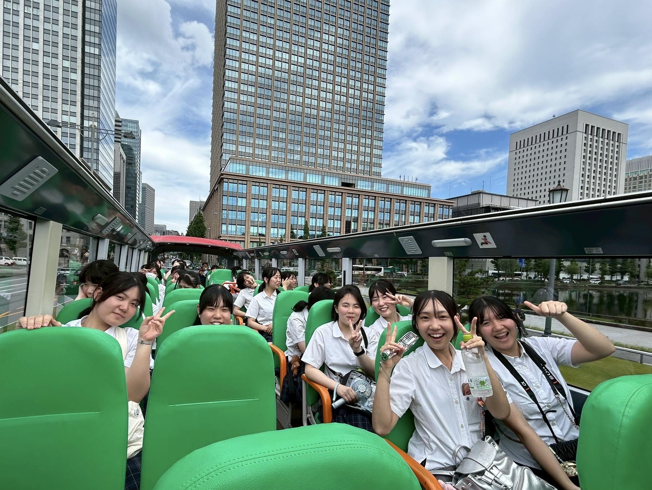 最後に、オープントップバスに乗車し、屋根のない開放感を感じながら東京の名所を走り抜けました。