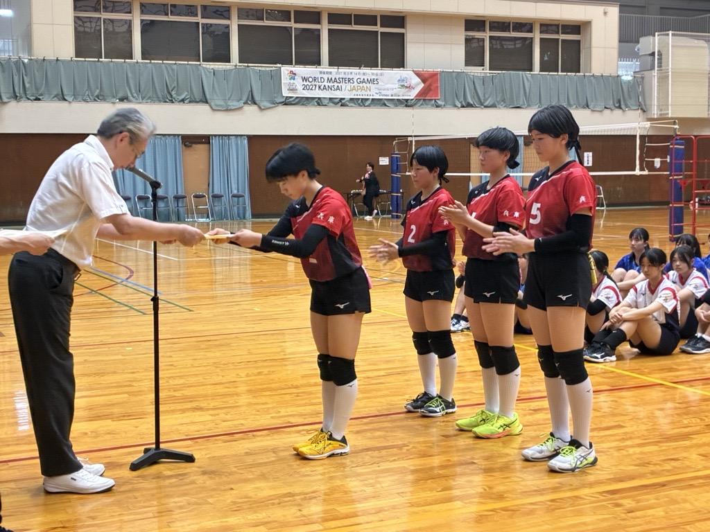 西宮市立中央体育館にて行われました令和7年度第45回西宮市中学校総合体育大会・第78回西宮市中学校女子バレーボール競技大会において、本校中学校バレーボール部が優勝をしました。
