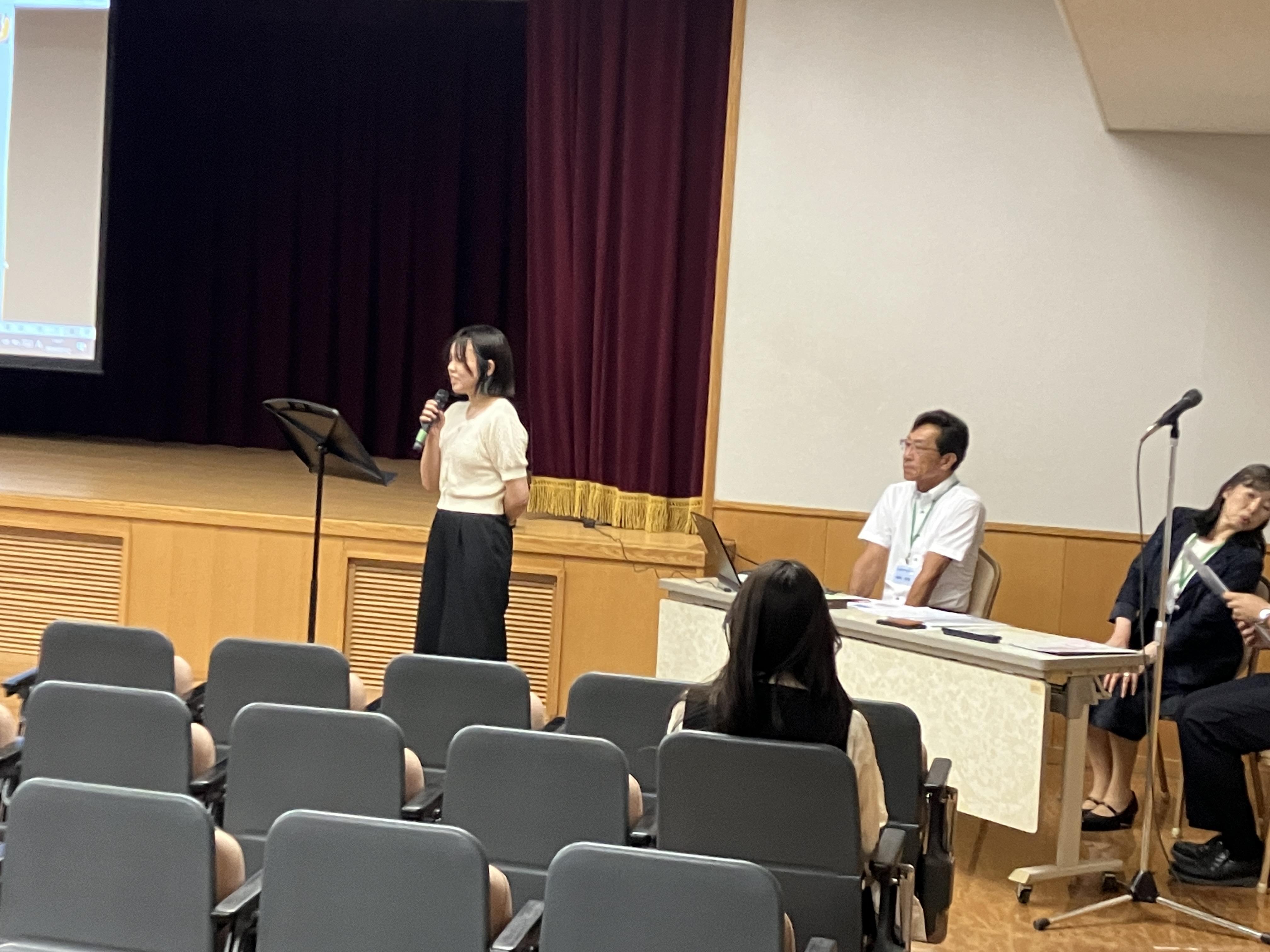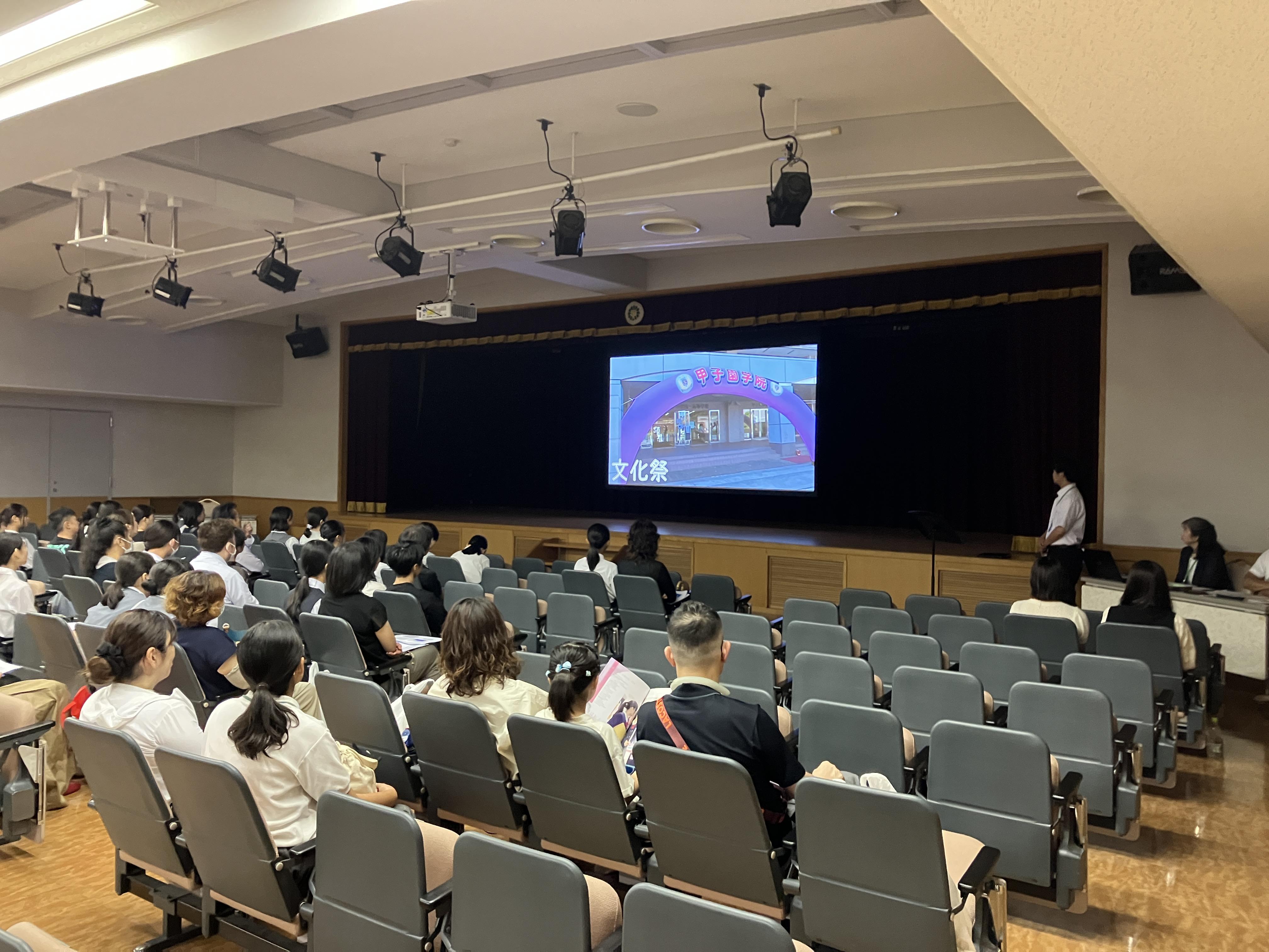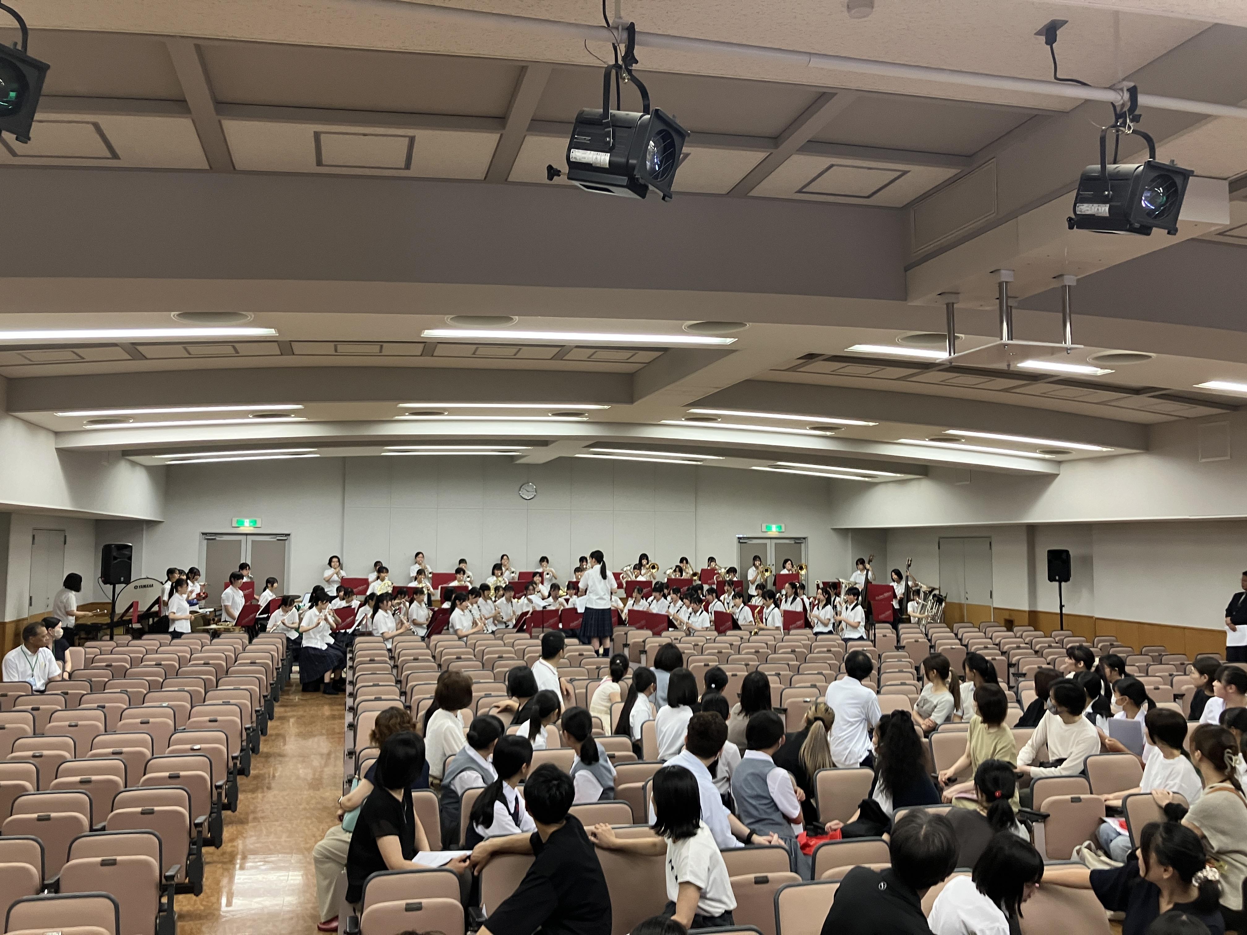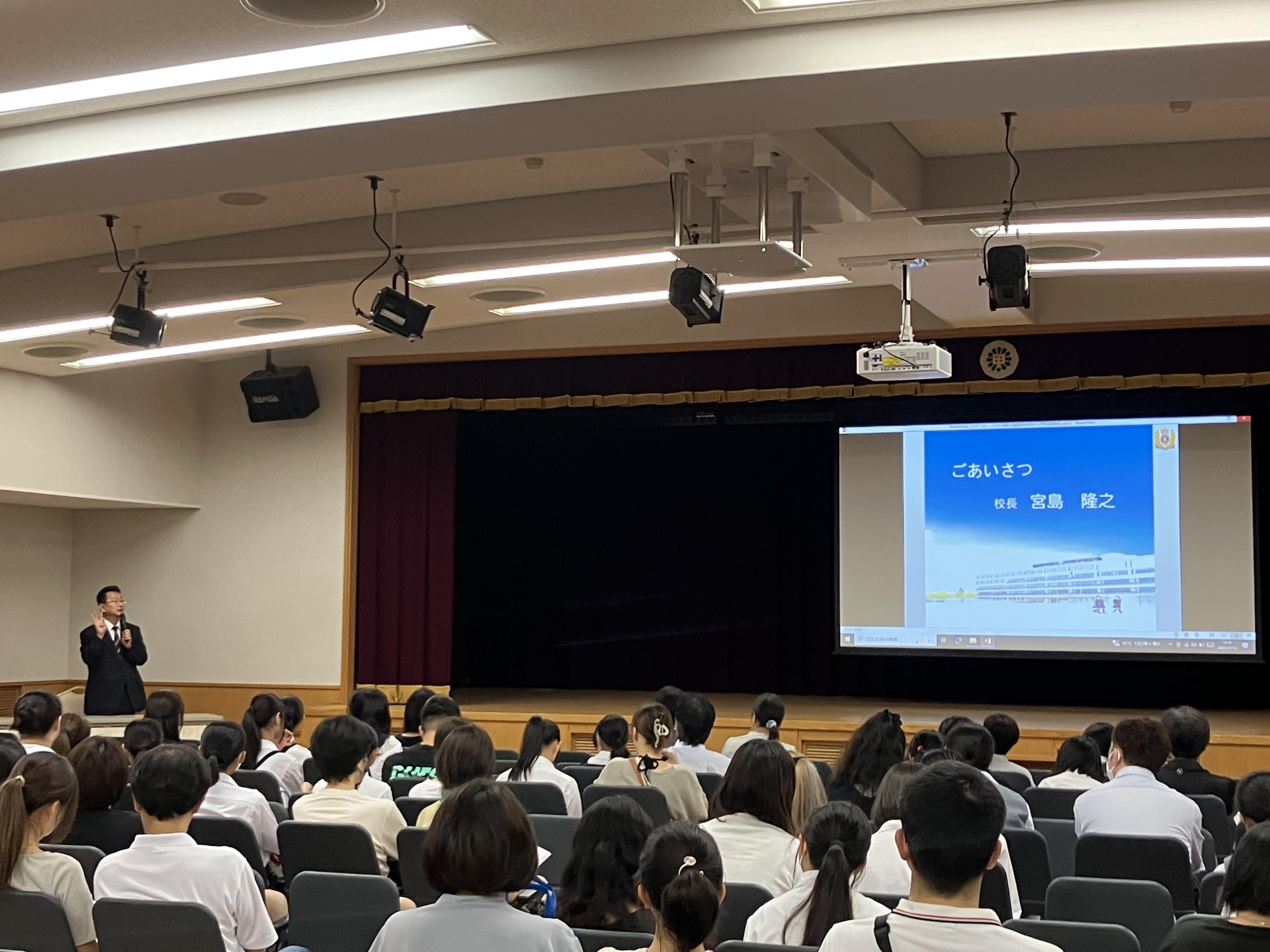 吹奏楽部による歓迎演奏で全体説明会がスタートし、本校の特色、コース説明、卒業生の体験報告ならびに入学試験概要の説明を行いました。