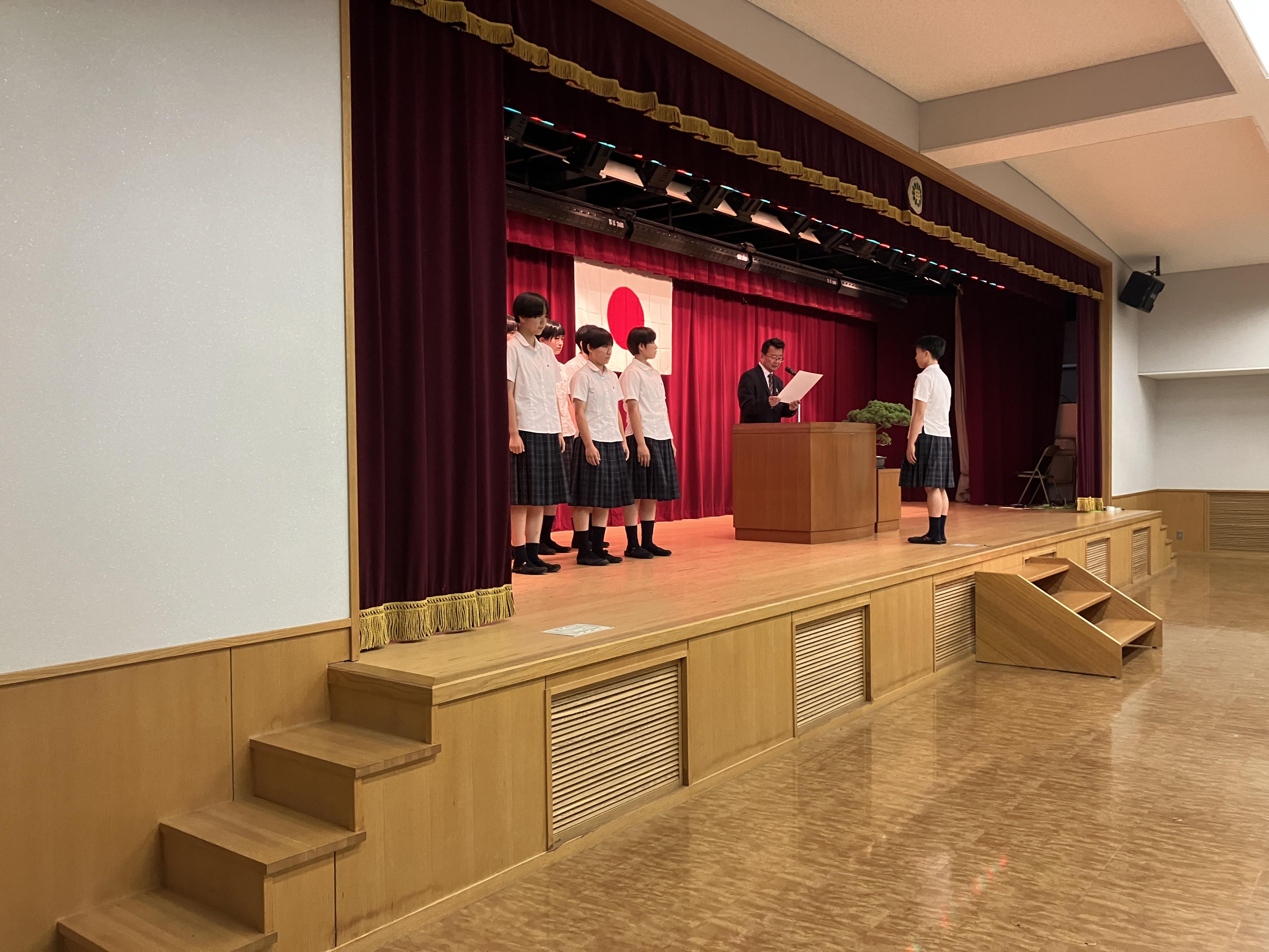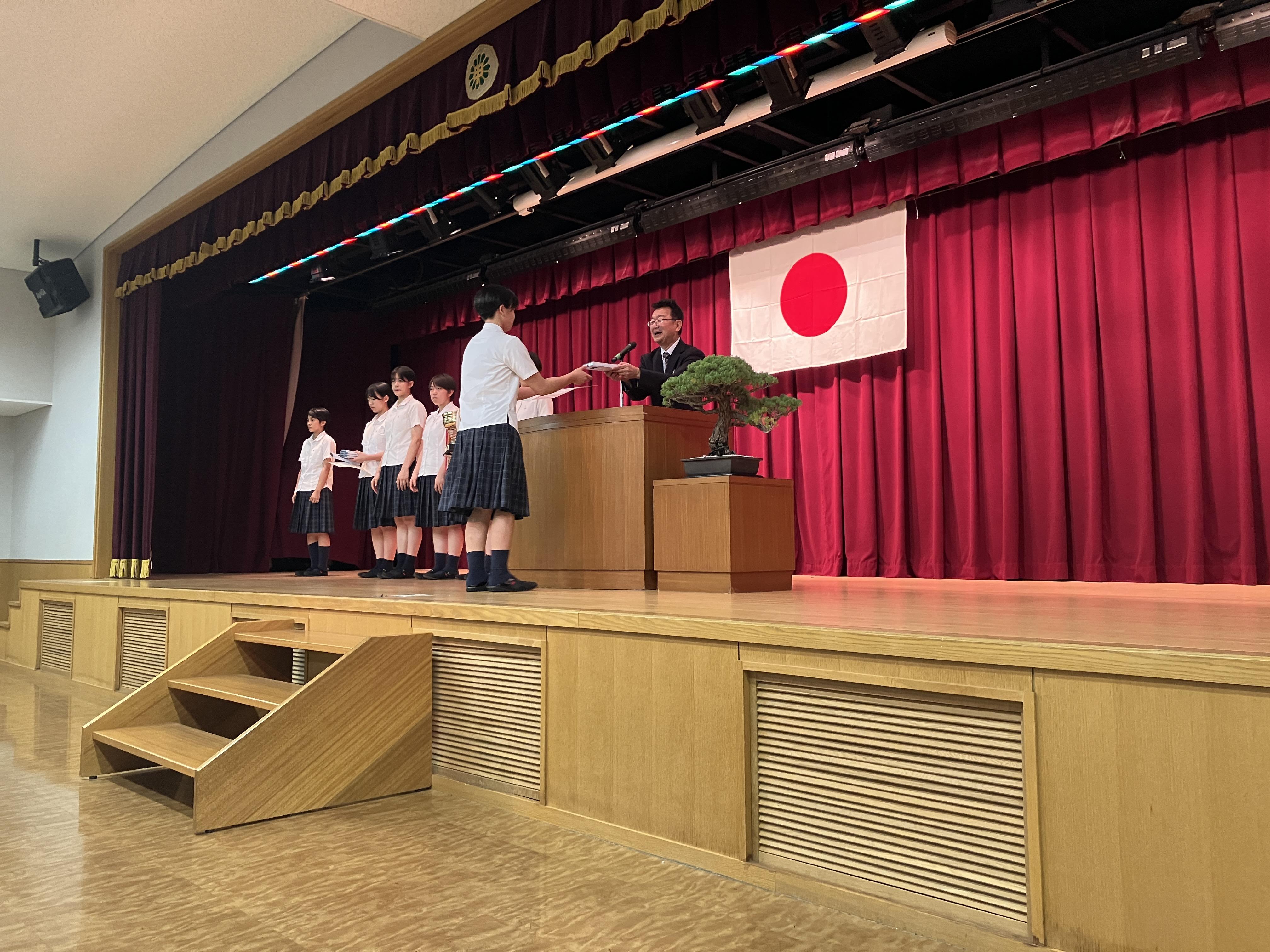 その後、各部活動の表彰伝達があり、中学校・高等学校剣道部、中学校・高等学校バレーボール部等の表彰があり、校長先生より賞状が授与されました。
